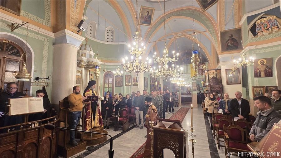 Μέ ἰδιαιτέρα κατάνυξη καί ἱεροπρέπεια ἐψάλη σήμερα τό ἑσπέρας, Παρασκευή 6η Μαρτίου 2026 ἐκ τοῦ Σεβ. Ποιμενάρχου μας κ. Χρυσοστόμου ἡ διατεταγμένη ἀκολουθία τῶν Β΄ Χαιρετισμῶν πρός τήν Ὑπεραγία Θεοτόκον, εἰς τόν Ἐνοριακό Ἱ. Ναό Εὐαγγελισμοῦ τῆς Θεοτόκου Σύμης, συμπαραστατουμένου ὑπό τοῦ Αἰδεσ. Ἐφημερίου π. Ἀντωνίου Μανιᾶ καί τοῦ Ἱεροδιακόνου π. Παύλου Τερεζάκη. Τά ἱερά ἀναλόγια διακόνησαν σεμνοπρεπῶς οἱ Ἱεροψάλτες κ. Ἀγαπητός Μιχελλής, κ. Ἐλευθέριος Ξηράκης καί κ. Ἰωάννης Τσίγκος, ἐνῶ μεταξύ τῶν πολυπληθῶν Χριστιανῶν μας, ἐκκλησιάσθη ὁ Διοικητής Δ.Α.Ν. Σύμης, Συνταγματάρχης κ. Νικόλαος Βλαστουδάκης, μετά τοῦ Ὑποδιοικητοῦ Ἀντισυνταγματάρχου κ. Εὐαγγέλου Χατζημιχάλη, ὡς καί στρατιωτικῆς ἀντιπροσωπείας.