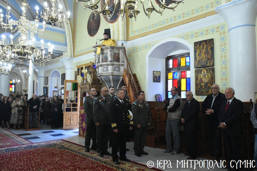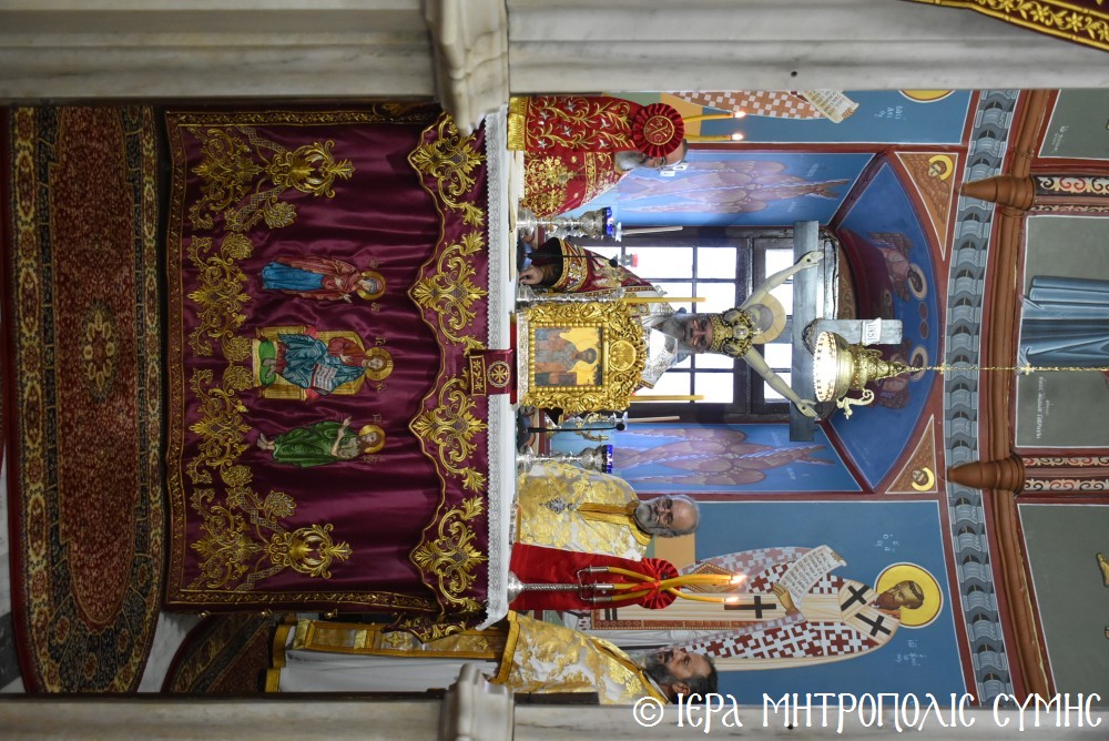 Σήμερα τό πρωΐ, Πέμπτη 13η Νοεμβρίου, κυριώνυμη ἡμέρα τῆς ἑορτῆς, ὁ Σεβ. Μητροπολίτης μας κ. Χρυσόστομος, χοροστάτησε στόν Ὄρθρο καί τέλεσε τήν Θ. Λειτουργία ὁμοίως στόν Ἱερό Μητροπολιτικό Ναό τοῦ Τιμίου Προδρόμου Σύμης μέ συλλειτουργούς του τόν Θεοφιλ. Καθηγούμενο τῆς Ἱ. Μονῆς Πανορμίτου Ἀντώνιο Πατρό, Ἐψηφισμένο Ἐπίσκοπο Ροδοστόλου, ὁ ὁποῖος προτροπῇ τοῦ Σεβ. Μητροπολίτου μας ἐκήρυξε τόν θεῖον λόγον, μιλώντας ἐμπνευσμένα γιά τήν μορφή τοῦ Ἱεροῦ Χρυσοστόμου, καθώς καί γιά τόν ἑορταζόμενο Ποιμενάρχη μας κ. Χρυσόστομο, ὡς καί γιά τό ἐπιτελεσθέν κατά τό διάστημα τῆς Ἀρχιερατείας του ἀξιόλογο ἔργο του, εὐχόμενος ἐκ μέρους τοῦ Ἱεροῦ Κλήρου στόν Σεβασμιώτατον. Συλλειτούργησαν ἐπίσης, ὁ Γενικός Ἀρχιερατικός Ἐπίτροπος καί Ἐφημέριος τοῦ Μητροπολιτικοῦ Ναοῦ Πρωτοπρ. Στέφανος Μακρῆς, ὁ Οἰκονόμος π. Χρῆστος Σταθόπουλος καί οἱ Πρεσβύτεροι, π. Ἀντώνιος Μανιᾶς, π. Γεώργιος Χατζηχρυσάφης, καί οἱ Διάκονοι π. Παῦλος Τερεζάκης καί π. Νικόλαος Καρμανιῶλος. Ξεχωριστές παρουσίες ἦταν τοῦ Δημάρχου Σύμης κ. Ἐλευθερίου Παπακαλοδούκα, τοῦ Ἀντιδημάρχου Σύμης κ. Νικήτα Γρύλλη, τοῦ Στρατιωτικοῦ Διοικητοῦ Δ.Α.Ν. Σύμης, Συνταγματάρχη κ. Χαραλάμπους Κατηφόρη, τοῦ Διοικητοῦ τοῦ 549 Τ.Ε. Ἀντισυνταγματάρχη κ. Εὐαγγέλου Καρσιώτη, τοῦ Λιμενάρχη Σύμης κ. Σταύρου Μακρῆ, τῆς Προέδρου τῆς Ἑνώσεως Γυναικῶν Σύμης κ. Σεβαστῆς Νικόλη καί τῶν ἐκπροσώπων τῶν λοιπῶν τοπικῶν Ἀρχῶν, Φορέων καί Συλλόγων.