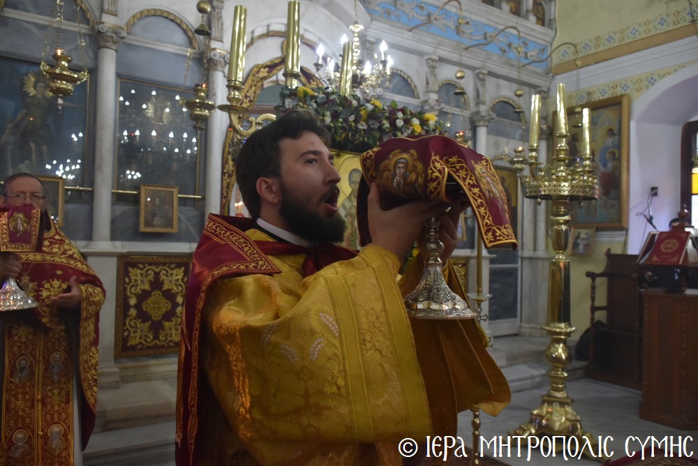 Μέ τήν Χάρη τοῦ ἐν Τριάδι Θεοῦ καί ἐπικαλούμενος τήν πρός Αὐτόν μεσιτείαν τοῦ ἐν Ἁγίοις οὐρανίου προστάτου του, Ἰωάννου Ἀρχιεπισκόπου Κωνσταντινουπόλεως τοῦ Χρυσοστόμου, ἑόρτασε ὁ Σεβ. Ποιμενάρχης μας, Μητροπολίτης Σύμης κ. Χρυσόστομος τά ὀνομαστήριά του, προεξάρχων τῶν Ἱερῶν Ἀκολουθιῶν εἰς τόν Ἱ. Μητροπολιτικόν Ναόν Τιμίου Προδρόμου Σύμης.