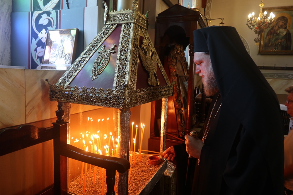 Ο Σεβασμιώτατος κ. Δωρόθεος Β’ προσεφώνησε τον Σεβασμιώτατο Μητροπολίτη Νέας Ιωνίας κ. Γαβριήλ, τον οποίο χαρακτήρισε διακεκριμένο και πολυμαθέστατο Ιεράρχη, εκπροσωπούντα επαξίως την Εκκλησία της Ελλάδος σε διεθνή εκκλησιαστικά fora, με ευρύτατο ποιμαντικό και κοινωνικό έργο στη Μητρόπολή του, του ευχήθηκε υγεία και μακροημέρευση και απηύθυνε τις ευχές του στους παρισταμένους πιστούς για το θέρος.