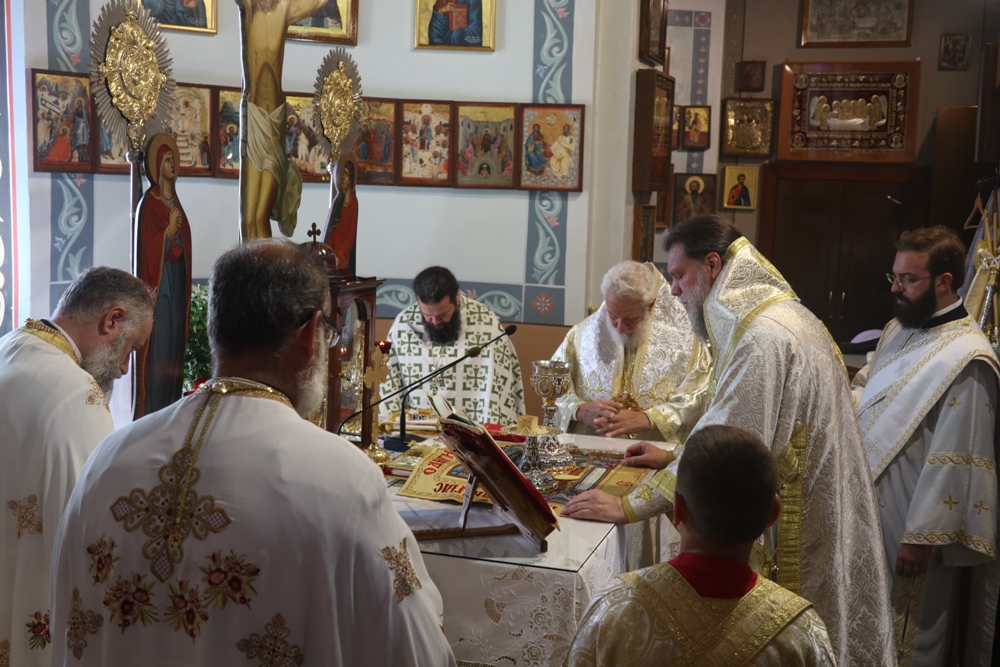 Με την ευλογητή συγκυρία της ελεύσεως του Σεβασμιωτάτου Μητροπολίτου Νέας Ιωνίας κ. Γαβριήλ στην Κίμωλο, για την τέλεση Μυστηρίου, ο Σεβασμιώτατος κ. Δωρόθεος Β’ συνιερούργησε μαζί του στον Ιερό Ναό Οδηγήτριας με τη συμμετοχή των Εφημερίων που τον Συνόδευαν, του Πρωτοσύγκελου του και του διάκονου, του Αρχιερατικού Επιτρόπου Κιμώλου Πρωτοπρ. Δημητρίου Βεντούρη και του Πρωτοπρ. Αντωνίου Τριανταφύλλου.