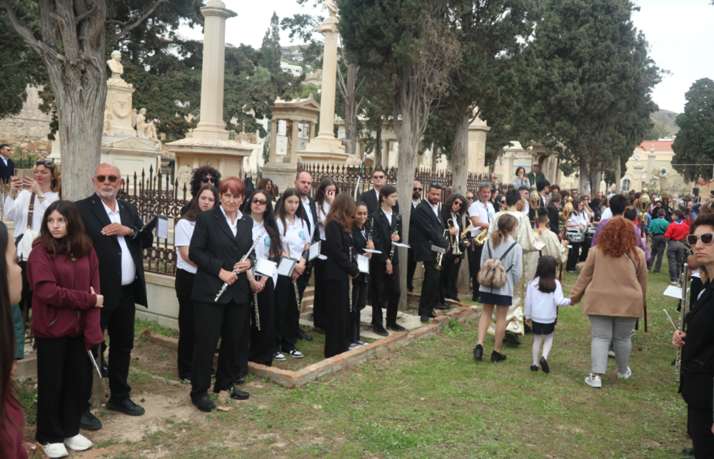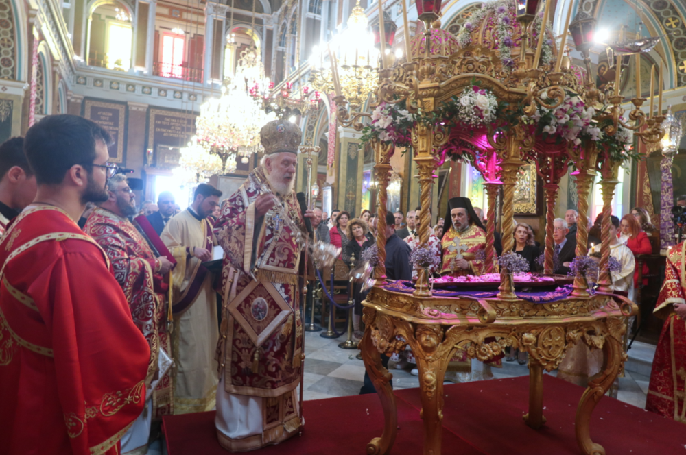 Με ιδιαίτερη δε λαμπρότητα και κατάνυξη τελέσθησαν στον Καθεδρικό Ναό του Αγίου Νικολάου, κατά την παραδεδομένη από τους προοδοιπορήσαντες Αρχιερείς τάξη, υπό τους πένθιμους παιάνες των εμβατηρίων της λαμπρής Φιλαρμονικής του Δήμου Σύρου- Ερμούπολης, προ της ψαλμωδίας των Αποστίχων, προεξάρχοντος του Σεβασμιωτάτου κ. Δωροθέου Β', με την παρουσία του Βουλευτού Κυκλάδων κ. Φιλ. Φόρτωμα, του Δημάρχου Σύρου-Ερμούπολης κ. Αλέξ. Αθανασίου, του Αντιδημάρχου Καθημερινότητας κ. Ιω. Μαραγκού , του Πρόδρου και του Εισαγγελέως Εφετών Αιγαίου, του Διοικητού του «Βαρδάκειου και Πρώιου Γενικού Νοσοκομείου Σύρου», και εκατοντάδων πιστών, που είχαν κατακλύσει τα κλιτή του Ιερού Ναού.
