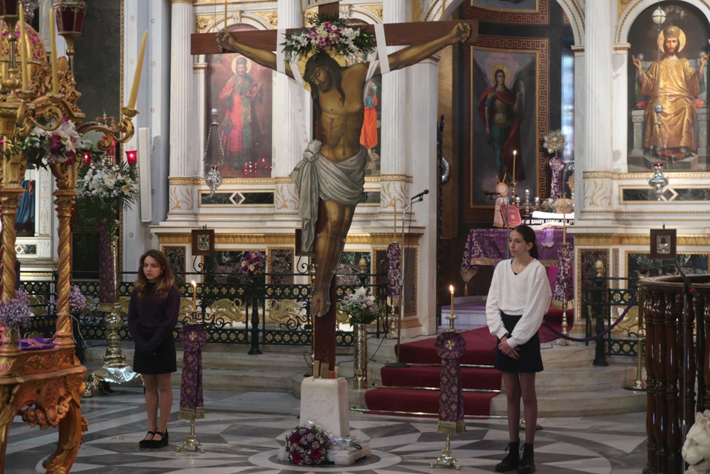 Με την παρουσία εκατοντάδων πιστών, Συρίων και επισκεπτών, σε όλους τους Ναούς της Σύρου τελέσθηκαν σήμερα το πρωί οι Ακολουθίες των Μεγάλων Ωρών και της Αποκαθηλώσεως.