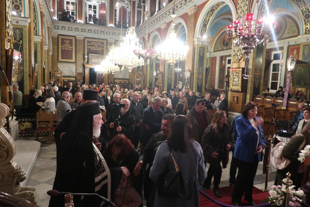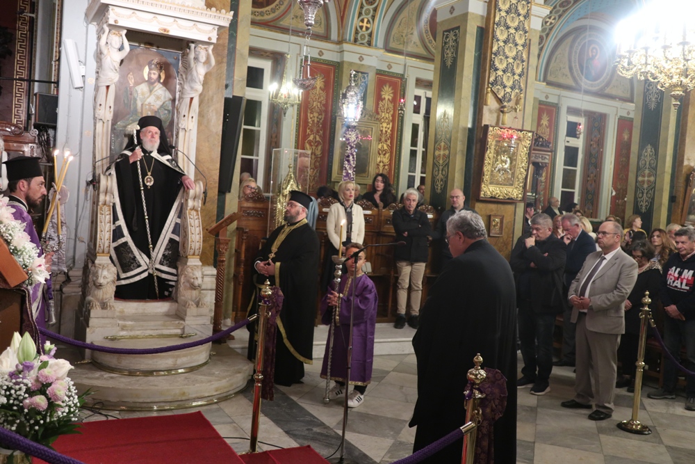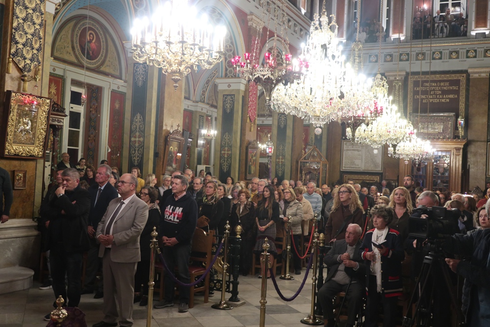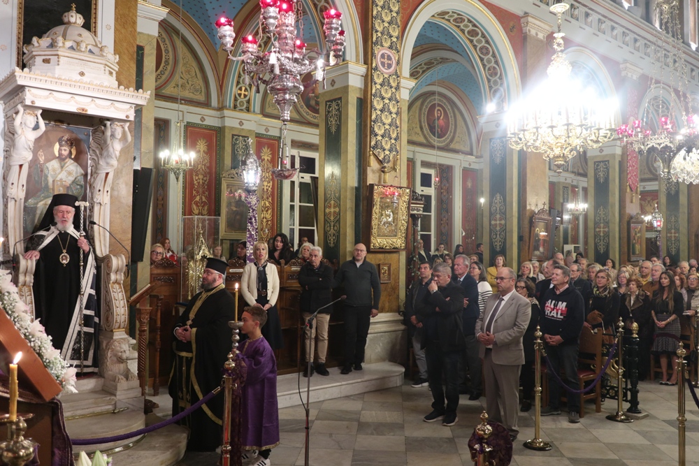 Ο Σεβασμιώτατος κ. Δωρόθεος Β' χοροστάτησε απόψε, παρουσία της Βουλευτού Κυκλάδων κας Αικατερίνης Μονογυιού, του Δημάρχου Σύρου-Ερμούπολης κ. Αλέξ. Αθανασίου, του Αντιδημάρχου καθημερινότητας κ. Ιω. Μαραγκού, του Διευθυντή Αστυνομικών Υπηρεσιών Κυκλάδων, του Προέδρου του Επιμελητηρίου Κυκλάδων, του Προέδρου του Συνδέσμου Συριανών , του διοικητού του Νοσοκομείου και εκατοντάδων πιστών, Συρίων και παρεπιδημούντων επισκεπτών, στον Ιερό Καθεδρικό Ναό του Πολιούχου της Σύρου Αγίου Νικολάου, κατά την Ακολουθία του Όρθρου της Μεγάλης Τετάρτης, το ιδιόμελο Δοξαστικό του οποίου, ποίημα Κασσιανής Μοναχής, απέδωσε με το δικό της ξεχωριστό τρόπο, η περιώνυμη πολυφωνική Χορωδία του Ναού, υπό τον κ. Ιωάννη Αργυρίου.