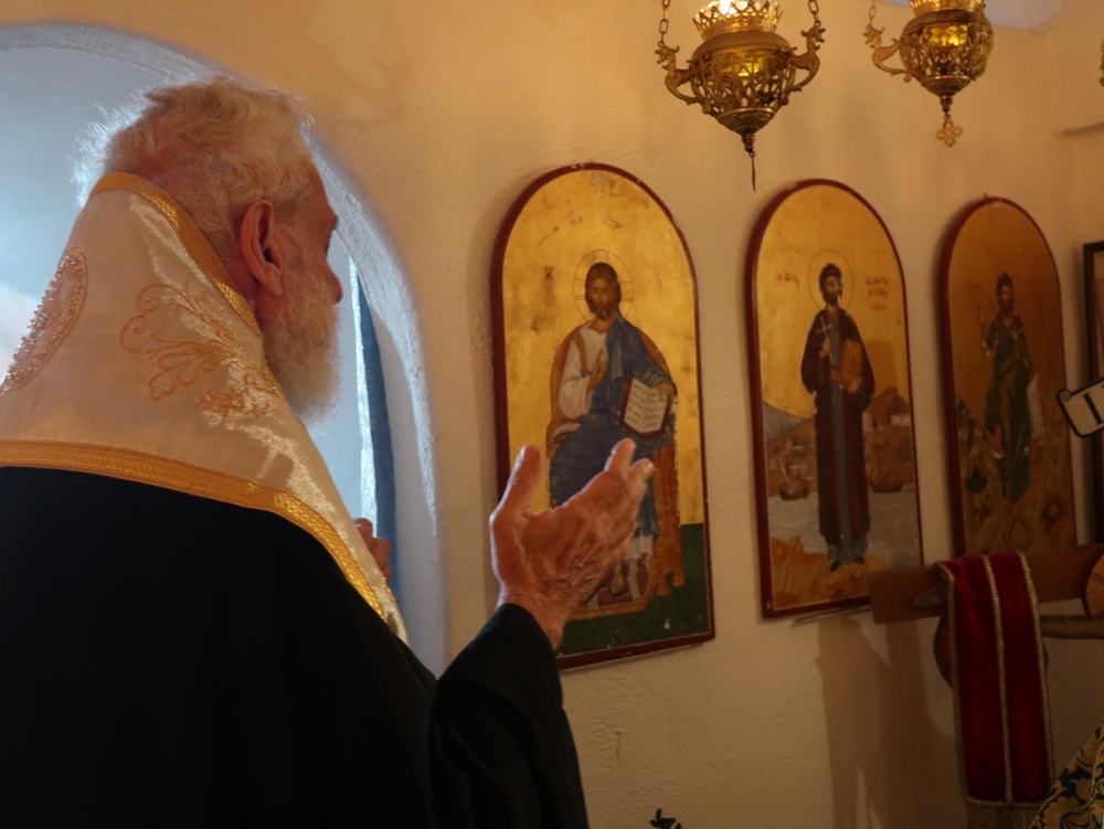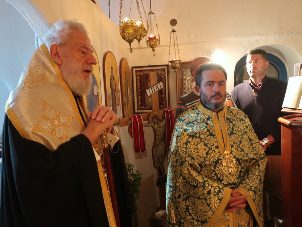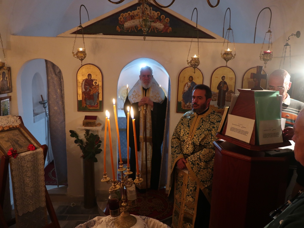 Χθές, ο Σεβασμιώτατος κ. Δωρόθεος Β΄ μετέβη στο πανηγυρίζον ιερό Παρεκκλήσιο του Αγίου Νεομάρτυρος Κωνσταντίνου του Υδραίου, στην απομακρυσμένη περιοχή της Δυτικής Άνδρου Αμμόλοχο, στον Κάβο Ντόρο, και ευχήθηκε στον κτήτορά του παλαίμαχο πλοίαρχο, καπετάν Κωνσταντίνο Τζώρτζη, τον Υδραίο.