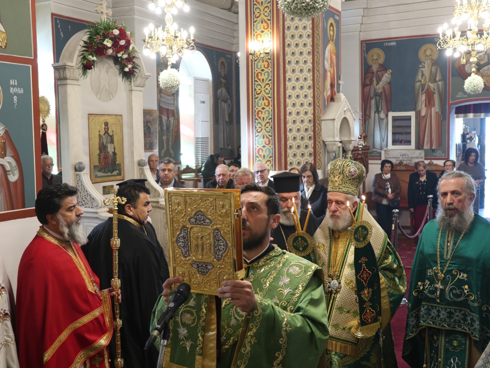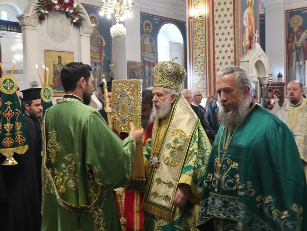 Κηρύσσων τον θείο λόγο, ο Σεβασμιώτατος κ. Δωρόθεος Β΄ ανεφέρθη στο περιεχόμενο της σημερινής Ευαγγελικής περικοπής, εστιάζοντας το λόγο του στη λακωνική πρόσκληση του Φιλίππου προς το Ναθαναήλ και τόνισε ότι ο Φίλιππος δεν προσπάθησε να πείσει τον Ναθαναήλ να ακολουθήσει το Χριστό με φιλοσοφικές αναλύσεις, αλλά μόνο με τη φρἀση "έρχου και ίδε", πράγμα το οποίο δηλώνει ότι η επαφή μας με το Χριστό είναι αποτέλεσμα ψυχικής ενέργειας και προσωπικού βιώματος, και όχι συνέπεια εκτενών θεολογικών και φιλοσοφικών, ιδιαίτερα στη σημερινή εποχή, αναλύσεων και απηύθυνε προς το εκκλησίασμα λόγους Κατηχητικού περιεχομένου και ευχήθηκε, ενώ ευχαρίστησε και συνεχάρη τον Εφημέριο του Ναού, Πρωτοπρ. Νικόλαο Ζαχαρώδη, για τη μέριμνά του προς αυτόν και την προετοιμασία της πανηγύρεως, τους Ιεροψάλτες, τους Επιτρόπους και όλους τους παρισταμένους για τη συμμετοχή τους, ιδιαιτέρως τους εκπαιδευτικούς και τους μαθητές, προς τους οποίους διένειμε αναμνηστικά δὠρα και ευχήθηκε σε όλους για το αρξάμενο Σαρανταήμερο των Χριστουγέννων.