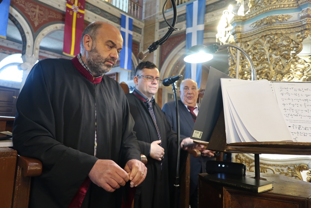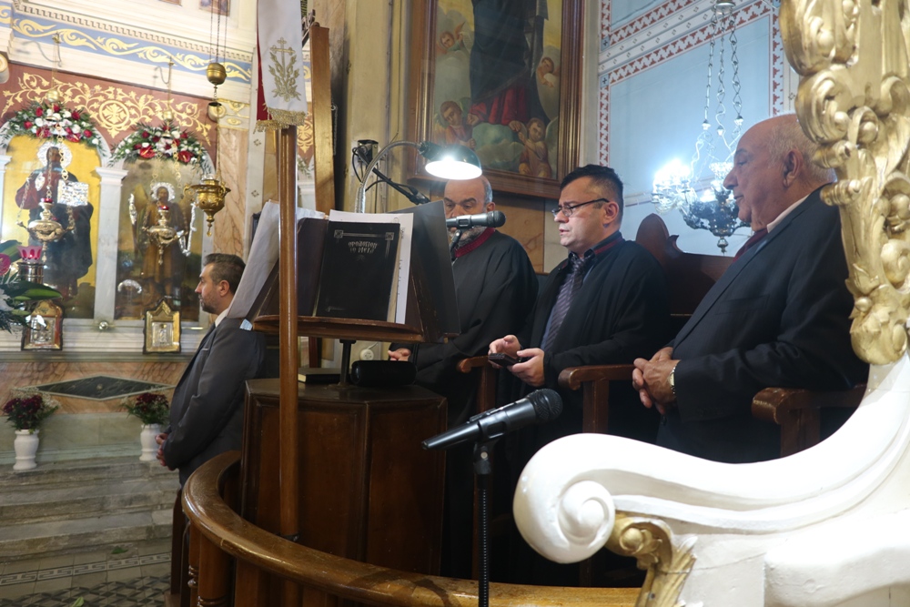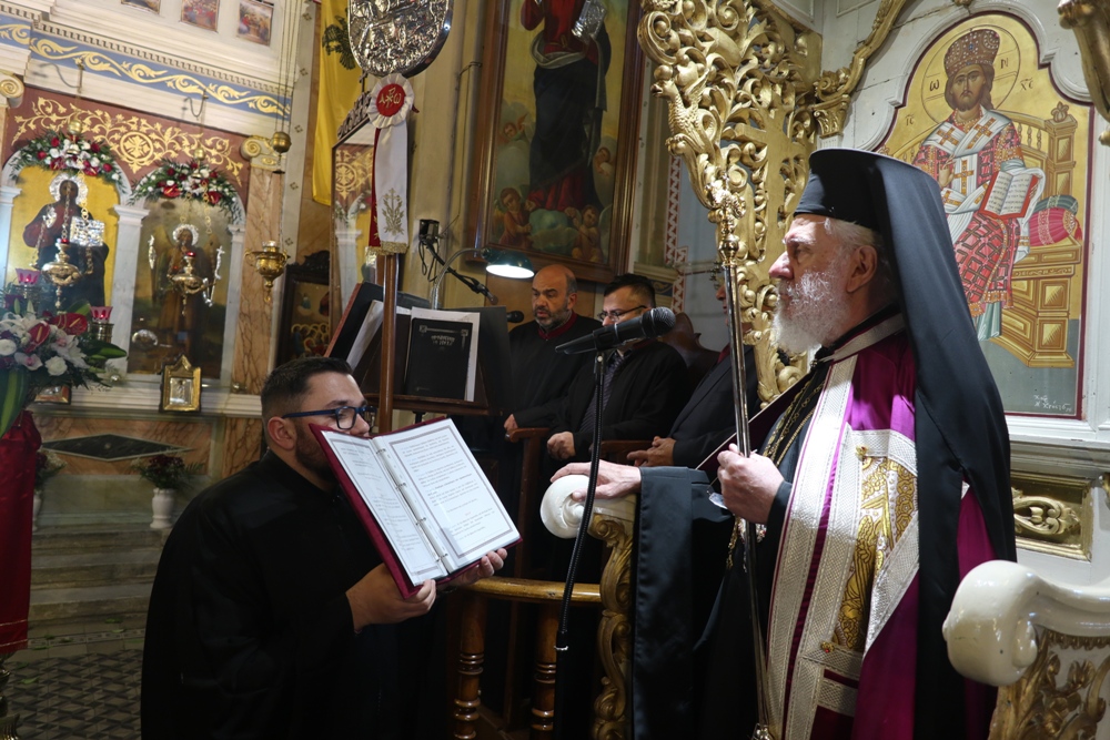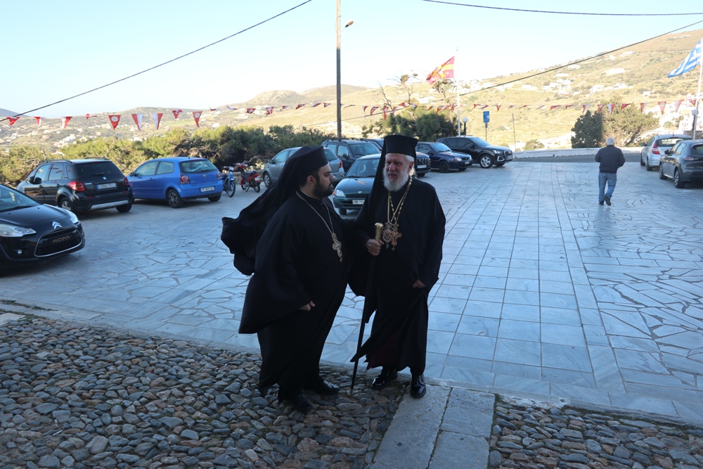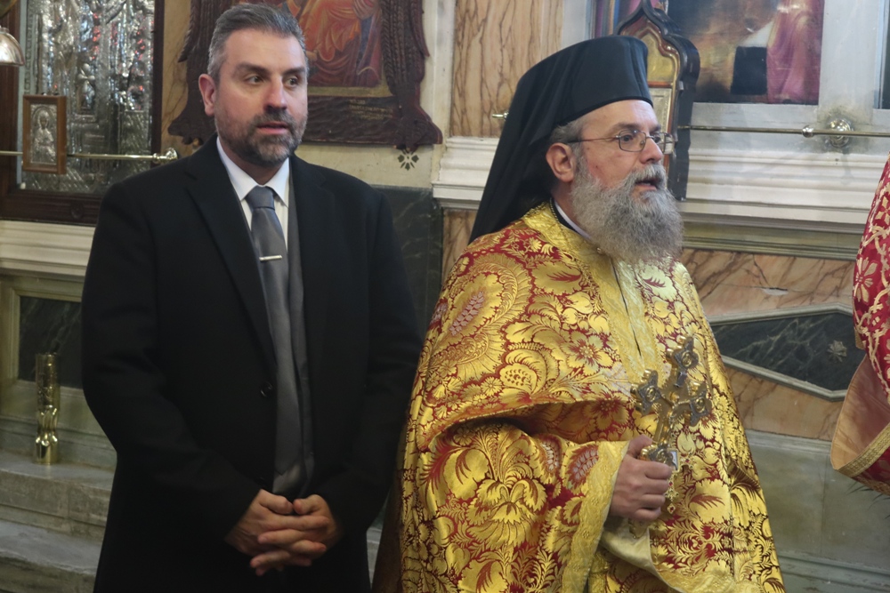 "Σεβασμιώτατε Πάτερ & Δέσποτα, Μητροπολίτα Σύρου κ. Δωρόθεε, Σεβαστοὶ καὶ τίμιοι Πατέρες, Πανοσιολογιώτατε Ἀρχιμανδρῖτα π. Νικόλαε Γαβαλλᾶ, Ἐντιμοτάτοι ἄρχοντες, Εὐσεβεῖς καὶ φιλέορτοι χριστιανοί, «Χριστὸς Ἀνέστη!»