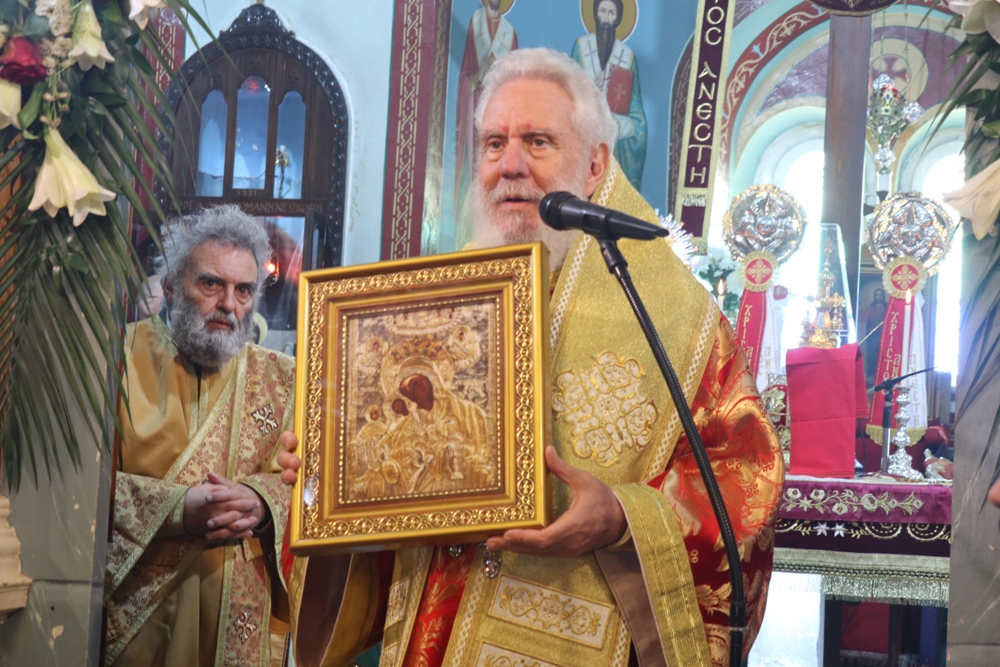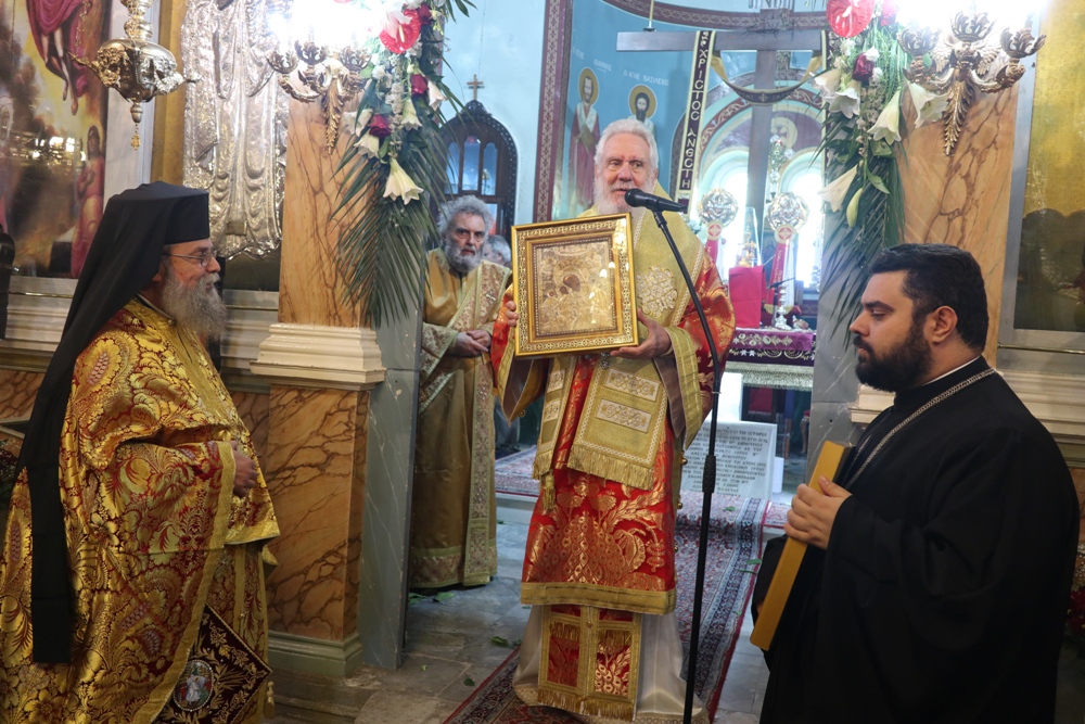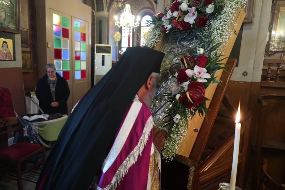 Σεβασμιώτατε, Ἐπιτρέψτε μου νὰ ἐκφράσω τὶς θερμὲς καὶ ἐγκάρδιες εὐχαριστίες μου γιὰ τὴν πατρική σας παρουσία, γιὰ τὴν ἀγάπη σας πρὸς τὸ ποίμνιό σας καὶ γιὰ τὴν εὐλογία ποὺ δώσατε ὥστε νὰ πραγματοποιηθεῖ ἡ σημερινὴ ἱερὰ πανήγυρις καὶ ἡ ὑποδοχή τῆς ἱερᾶς εἰκόνος.