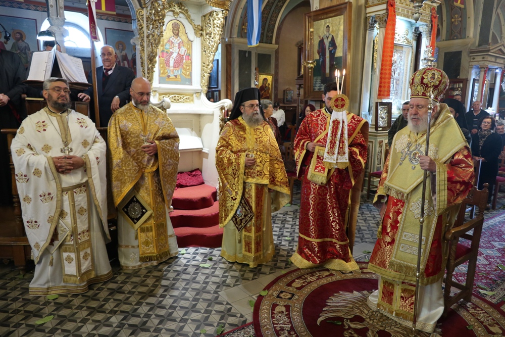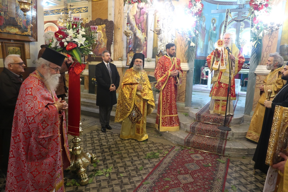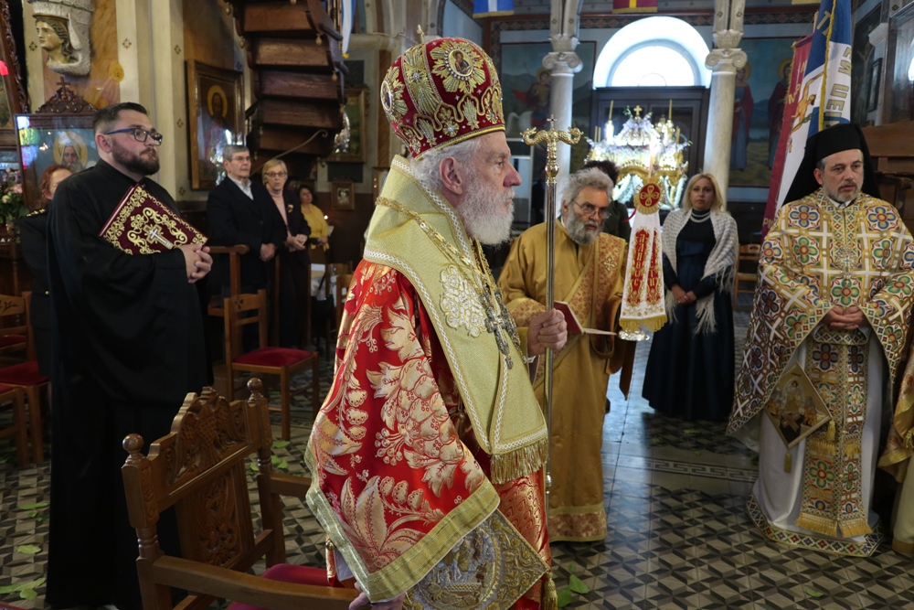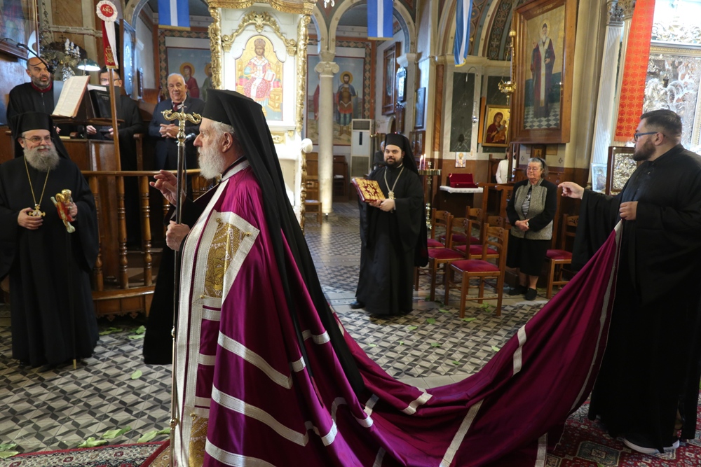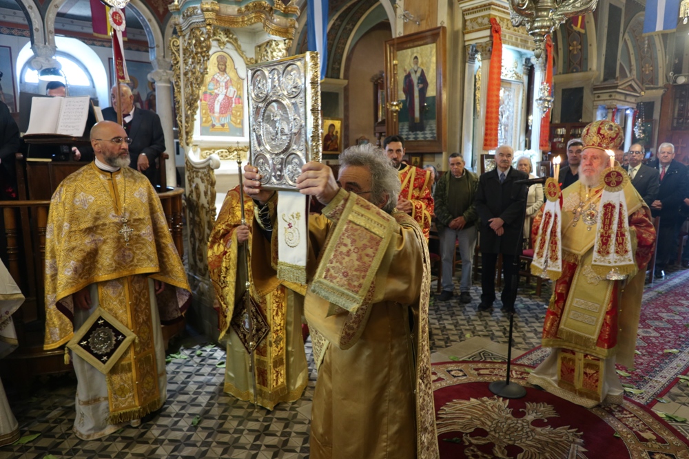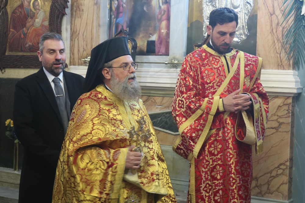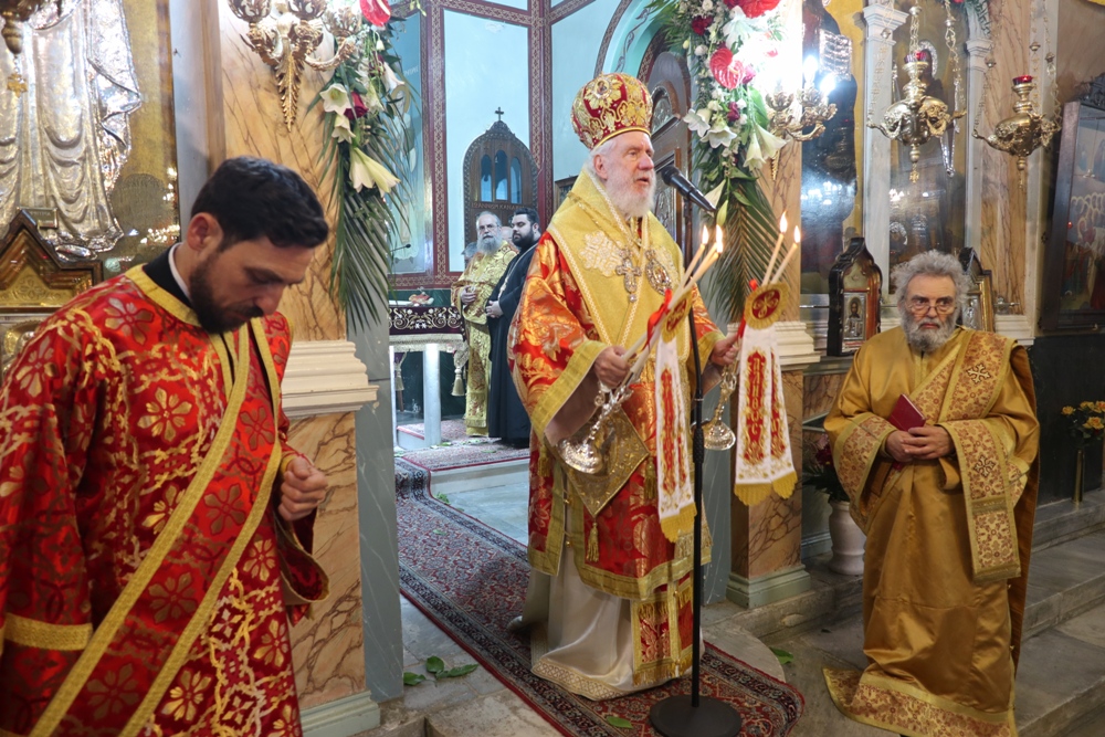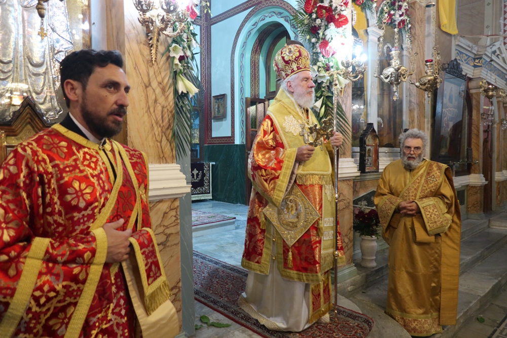 Προ του πέρατος της Θείας Λειτουργίας, ο Σεβασμιώτατος κ. Δωρόθεος Β’ ευχαρίστησε τον κομίσαντα την ιερά Εικόνα Πανοσιολ. Αρχιμ. Ραφαήλ Καρακεχαγιά και τον παρασχόντα την προς τούτο ευλογία του Μακαριώτατο Αρχιεπίσκοπο Αθηνών κ. Ιερώνυμο Β’, ευχαρίστησε και συνεχάρη τον Εφημέριο του Ναού, Αρχιμ. Νικόλαο Γαβαλλά τους Επιτρόπους και τους διακονητές του Ναού, όλους τους συμμετασχόντες, χθες και σήμερα, στις ιερές Ακολουθίες και απηύθυνε σε όλους τις Αναστάσιμες ευχές του.