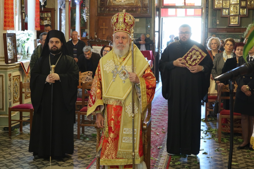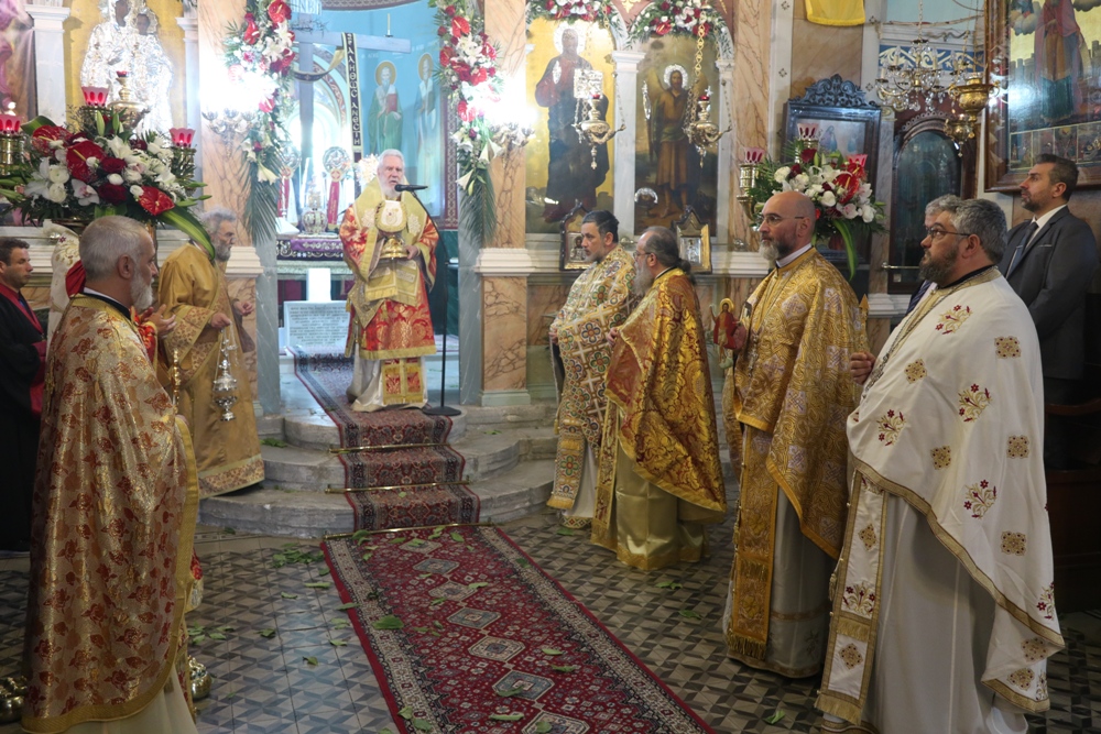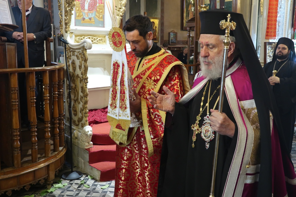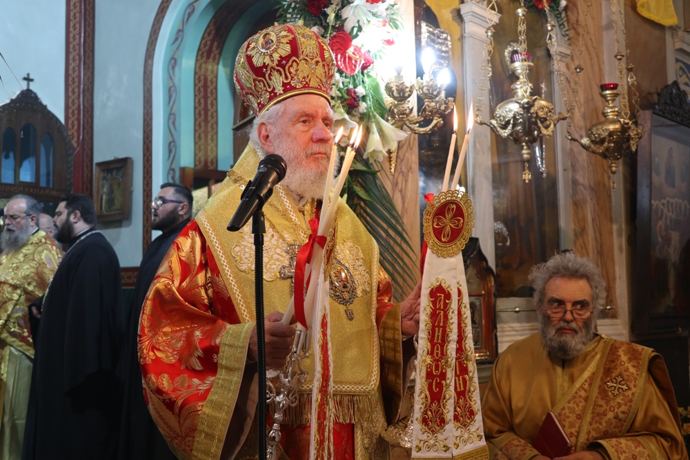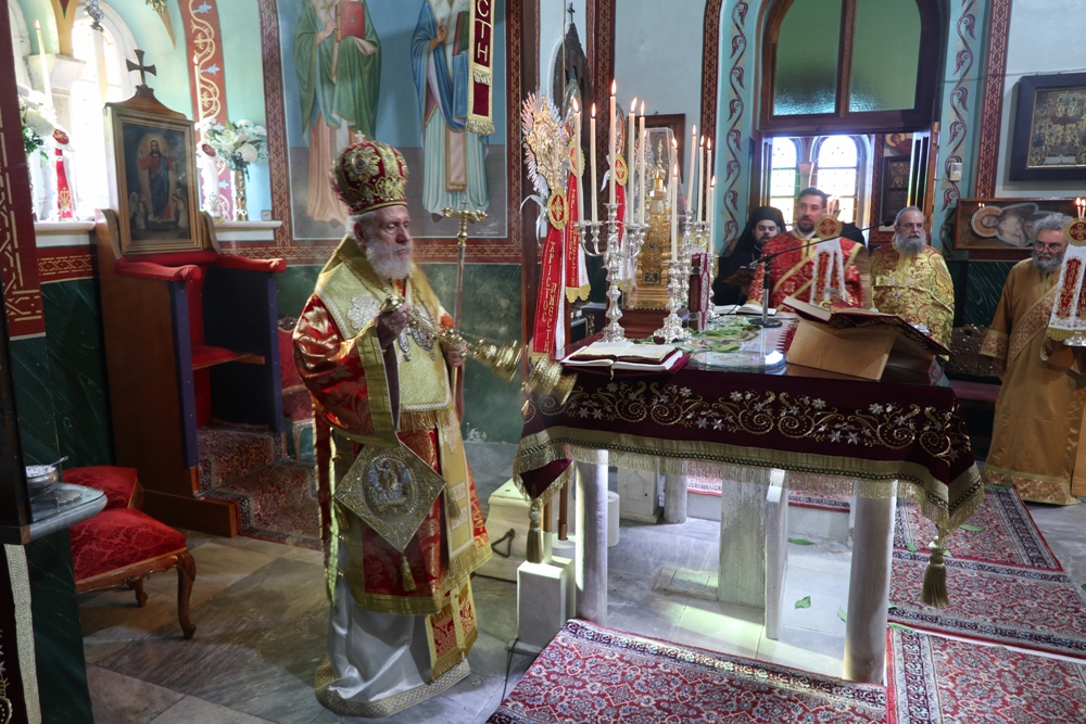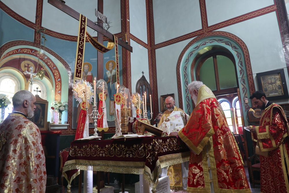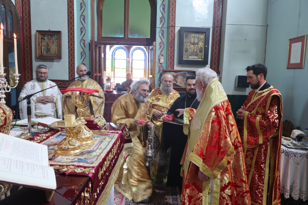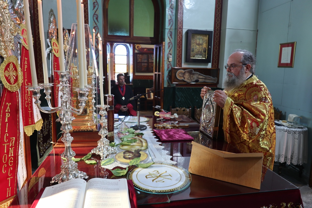 Προ του πέρατος της Θείας Λειτουργίας, ο Σεβασμιώτατος κ. Δωρόθεος Β’ ευχαρίστησε τον κομίσαντα την ιερά Εικόνα Πανοσιολ. Αρχιμ. Ραφαήλ Καρακεχαγιά και τον παρασχόντα την προς τούτο ευλογία του Μακαριώτατο Αρχιεπίσκοπο Αθηνών κ. Ιερώνυμο Β’, ευχαρίστησε και συνεχάρη τον Εφημέριο του Ναού, Αρχιμ. Νικόλαο Γαβαλλά τους Επιτρόπους και τους διακονητές του Ναού, όλους τους συμμετασχόντες, χθες και σήμερα, στις ιερές Ακολουθίες και απηύθυνε σε όλους τις Αναστάσιμες ευχές του.