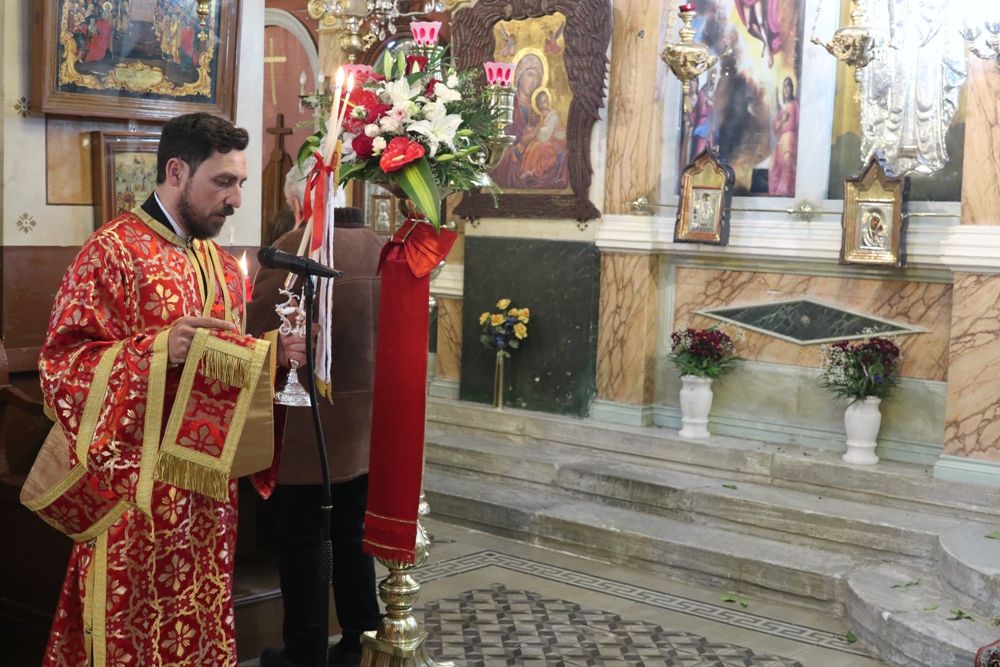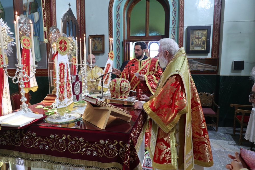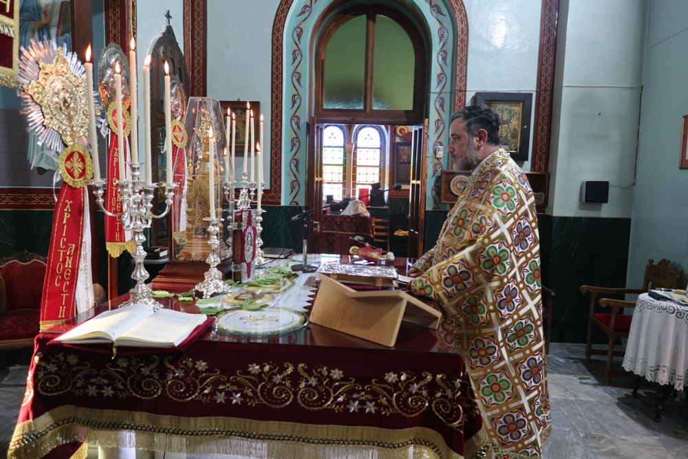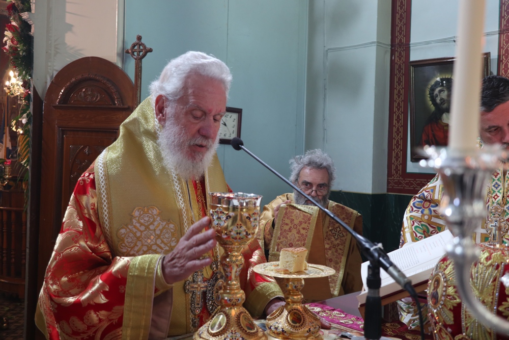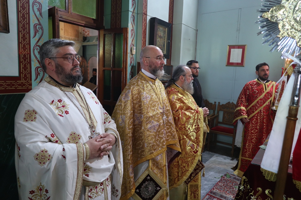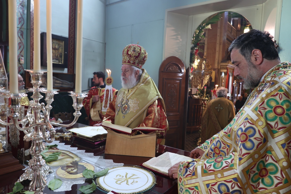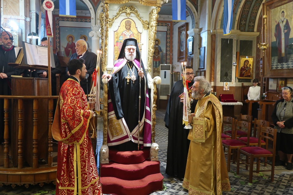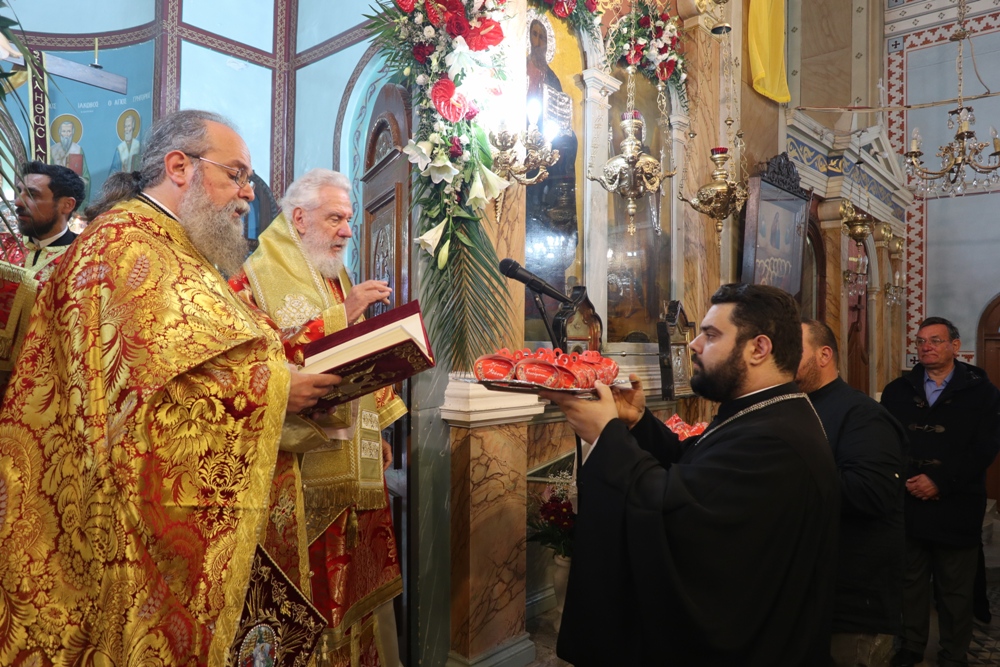 Προ του πέρατος της Θείας Λειτουργίας, ο Σεβασμιώτατος κ. Δωρόθεος Β’ ευχαρίστησε τον κομίσαντα την ιερά Εικόνα Πανοσιολ. Αρχιμ. Ραφαήλ Καρακεχαγιά και τον παρασχόντα την προς τούτο ευλογία του Μακαριώτατο Αρχιεπίσκοπο Αθηνών κ. Ιερώνυμο Β’, ευχαρίστησε και συνεχάρη τον Εφημέριο του Ναού, Αρχιμ. Νικόλαο Γαβαλλά τους Επιτρόπους και τους διακονητές του Ναού, όλους τους συμμετασχόντες, χθες και σήμερα, στις ιερές Ακολουθίες και απηύθυνε σε όλους τις Αναστάσιμες ευχές του.