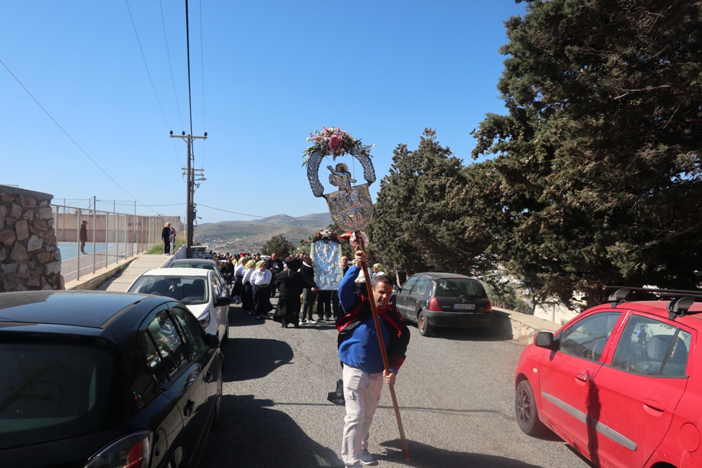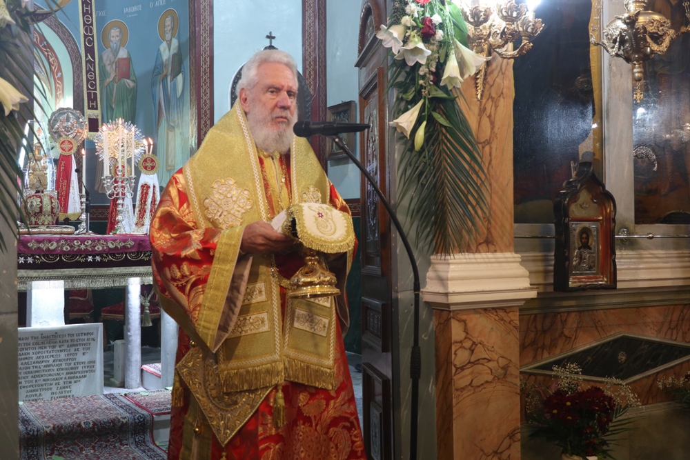 Ἂς τὴν παρακαλέσουμε νὰ σκεπάζει τὸ νησὶ τῆς Σύρου, νὰ προστατεύει τὶς οἰκογένειές μας, νὰ φωτίζει τοὺς νέους καὶ νὰ ἐνισχύει κάθε δοκιμαζόμενο ἄνθρωπο.