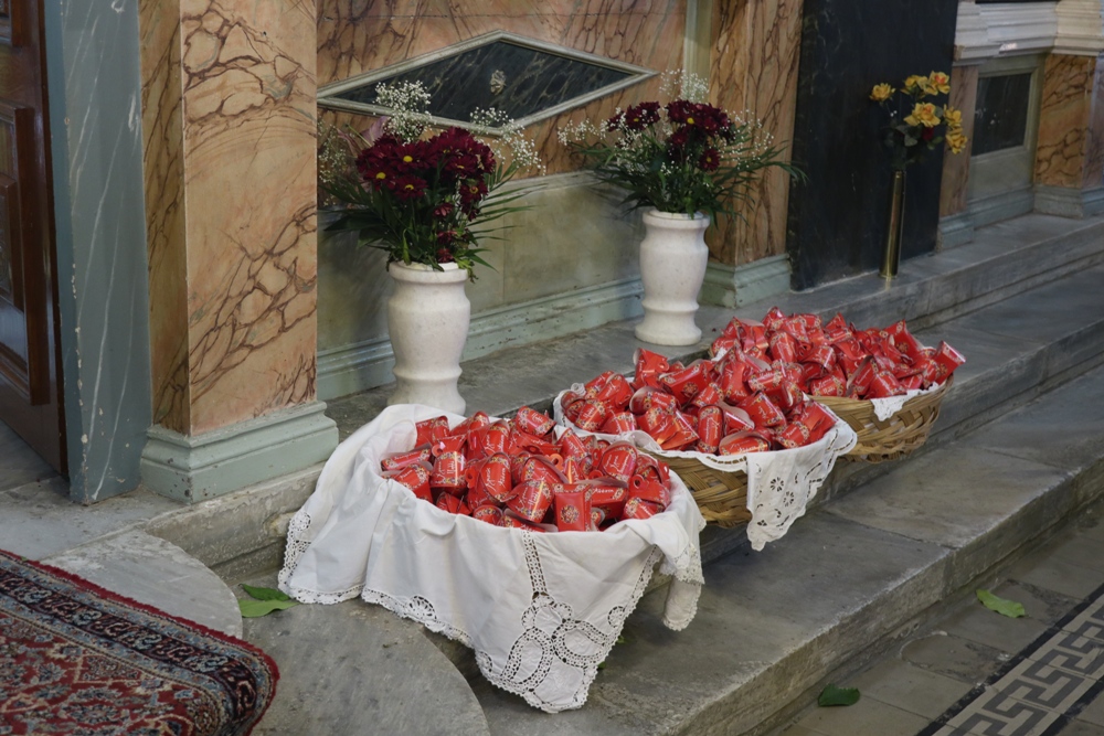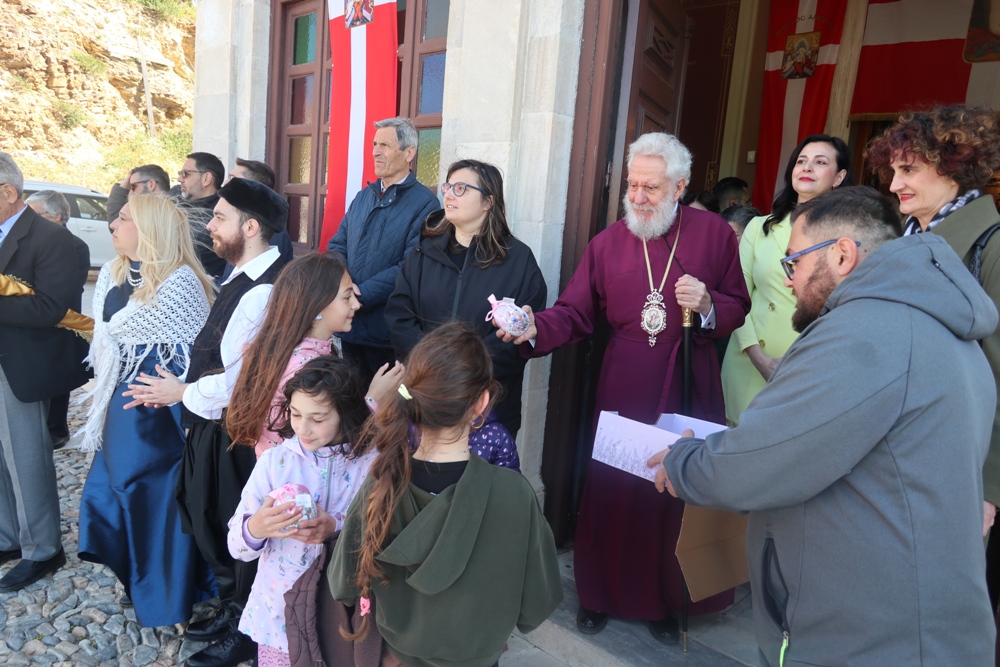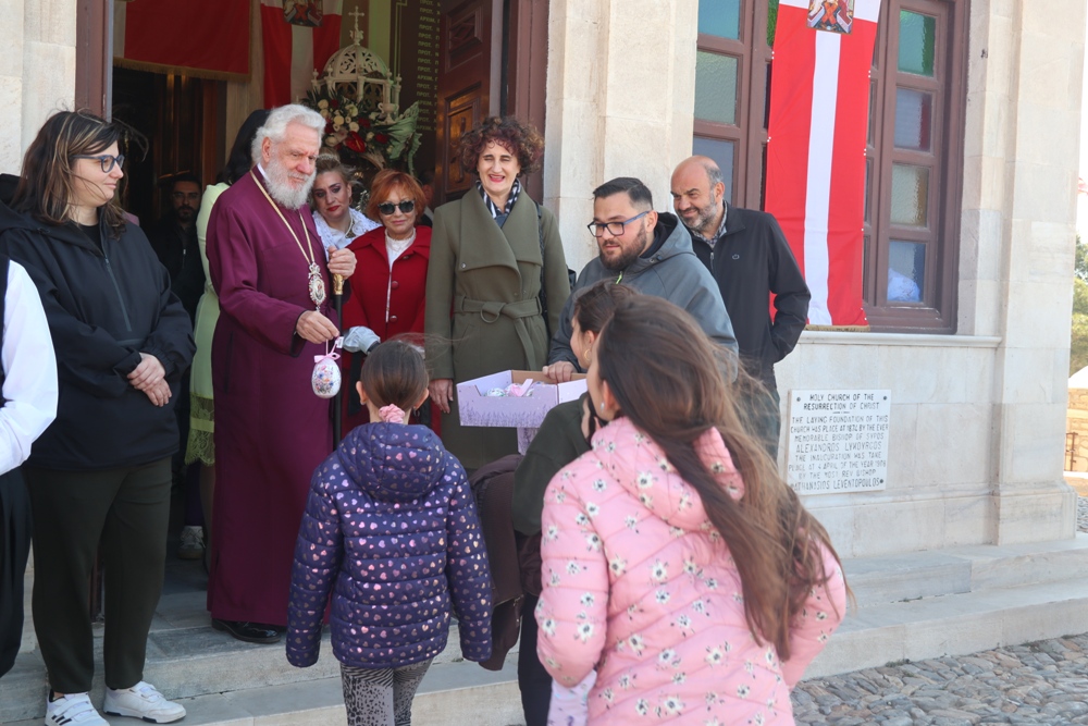 Κατά την απόλυση, ο Σεβασμιώτατος κ. Δωροθεος Β’ διένειμε σε όλους Πασχάλια αυγά, που είχαν προηγουμένως ευλογηθεί στο Ναό.