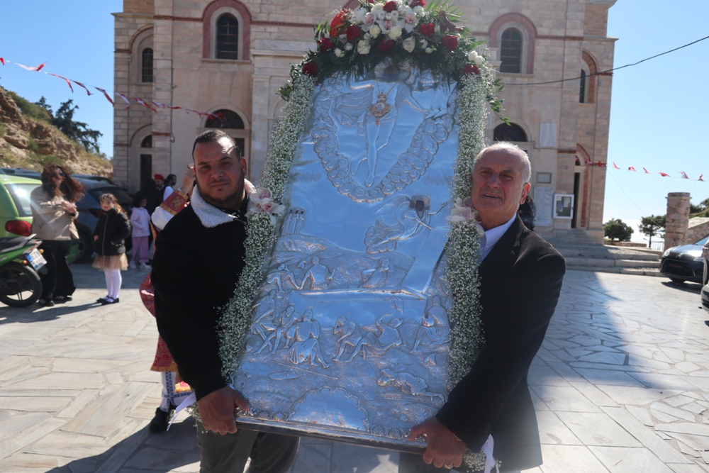 Ο απαστράπτων από καθαριότητα και τάξη, φιλοκάλω και φιλοτίμω μερίμνη του Εφημερίου του, Αρχιμ. Νικολάου Γαβαλλά, Ιερός Ναός της Αναστάσεως του Κυρίου, εόρτασε σήμερα με μεγαλοπρέπεια την ετήσια πανήγυρί του, ιερουργούντος του Σεβασμιωτάτου κ. Δωροθέου Β’ , με τη συλλειτουργική συμμετοχή του κομίσαντος εξ Αθηνών την ιερά Εικόνα της Παναγίας της «Ατταλειωτίσσης» Αρχιμ. Ραφαήλ Κατακεχαγιά» Εφημερίων από άλλες Ενορίες και των Διακόνων, και με την παρουσία του Δημάρχου Σύρου- Ερμούπολης κ. Αλέξ. Αθανασίου, του Αντιδημάρχου Καθημερινότητας κ. Ιω. Μαραγκού, του Θεματικού Αντιπεριφερειάρχη Μεταφορών κ. Μ. Δαδάου, Δημοτικών και Κοινοτικών Συμβούλων, του Υποστράτηγου -Περιφερειακού Διευθυντή της Ελληνικής Αστυνομίας και του Διευθυντού των Αστυνομικών Υπηρεσιών Κυκλάδων, της Λιμενάρχου και του Υπολιμενάρχου Σύρου, εκπροσώπου των Πυροσβεστικών Υπηρεσιών, του Προέδρου του Συνδέσμου Συριανών, της Προέδρου και μελών του Συλλόγου Μικρασιατών Ερμούπολης Σύρου με παραδοσιακές ενδυμασίες, της Προέδρου της Αδελφότητας Ανωμεριτών Μυκόνου και πολλών πιστών.