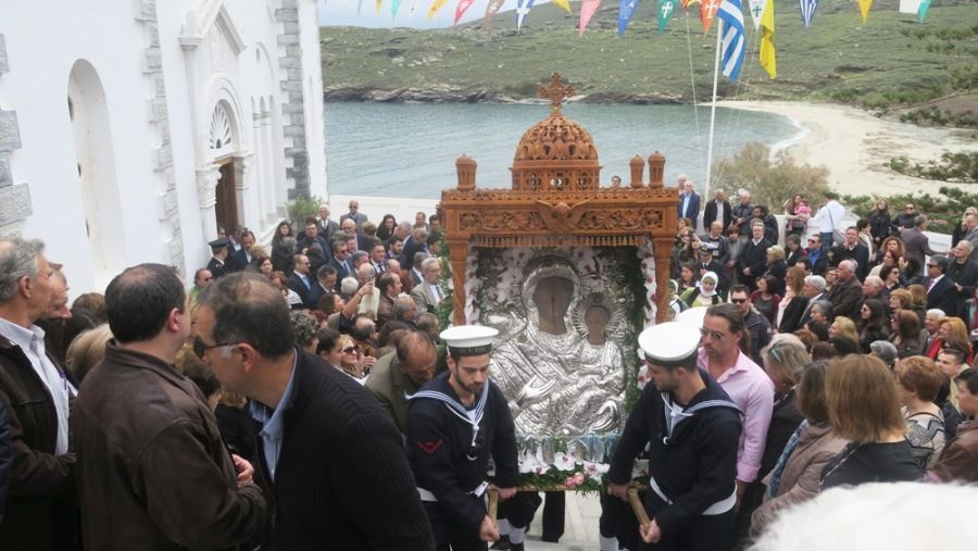 Τήν Παρασκευή καί Σάββατο τοῦ Ἀκαθίστου Ὕμνου, 3 καί 4 Ἀπριλίου, ἡ Ἄνδρος μας πανηγυρίζει τήν Πολιοῦχο της Παναγία τήν Θεοσκέπαστη καί θυμᾶται τό ἀνερμήνευτο θαῦμα τῆς οἰκονομίας καί τῆς ἐπεμβάσεώς Της, πού ἡ παράδοση τῶν Πατέρων μας διέσωσε στήν πορεία τῶν αἰώνων.