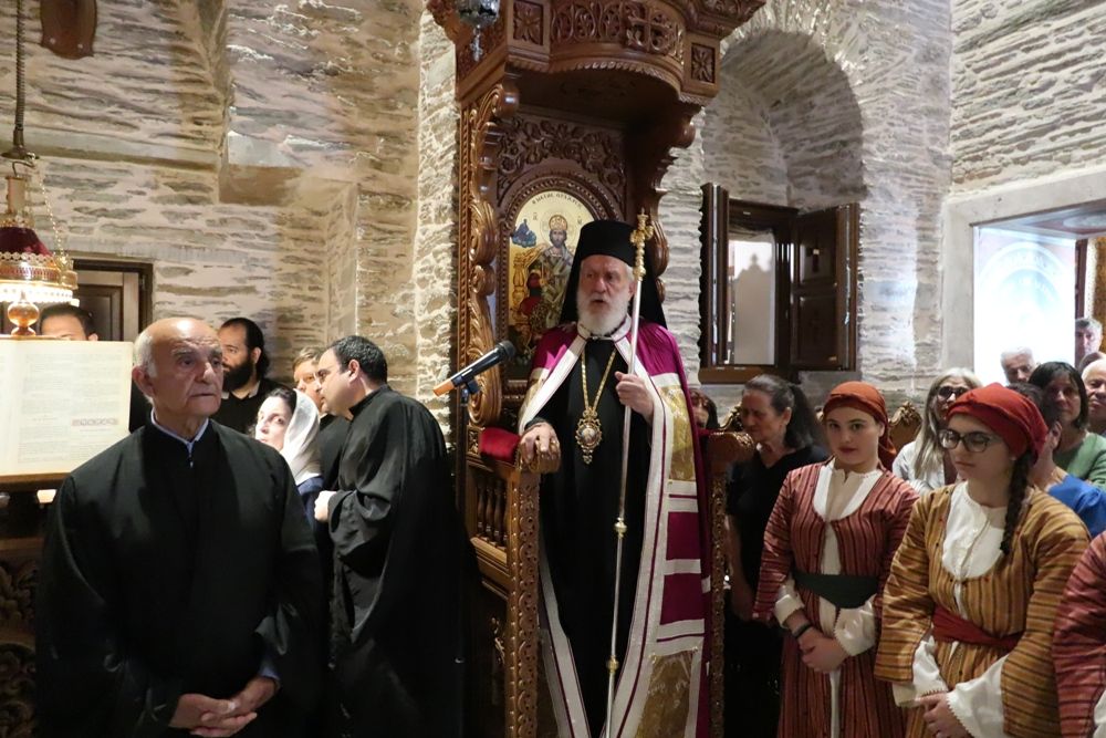 Ευχαρίστησε δε και συνεχάρη τον Ηγούμενο της Μονής Αρχιμ. Χερουβείμ και τους διακονητές της Μονής για την άψογη προετοιμασία της Πανηγύρεως και την μέριμνά τους για την Ιερά Μονή, και χειροθέτησε Αναγνώστη ευσεβή νέο, διαμένοντα στην Ιερά Μονή και μετά ζήλου το Αναλόγιο αυτής διακονούντα.