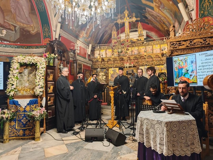 Με την ευχή και ευλογία του Σεβασμιώτατου κ. Δωροθέου Β’, πραγματοποιήθηκε την Τρίτη 8 Απριλίου στον κατάμεστο από πιστούς Ιερό Μητροπολιτικό Ναό της Μεγάλης Παναγιάς, Μουσική εκδήλωση με βυζαντινούς ύμνους της Μεγάλης Εβδομάδας υπό τον τίτλο « Προσδοκώ Ανάστασιν … ένα οδοιπορικό στο Θείο πάθος» από τον βυζαντινό χορό του Καθεδρικού Ναού του Αγίου Διονυσίου του Αρεοπαγίτου, πολιούχου Αθηνών, υπό την διεύθυνση του Μουσικολογιώτατου Πρωτομαΐστορα της Μεγάλης του Χριστού Εκκλησίας κ. Γεωργίου Δεμελή, και σε κείμενα του κ. Λάμπρου Παγούνη, Θεολόγου και υποψηφίου Διδάκτορος της Θεολογικής Σχολής του Α. Π. Θ.