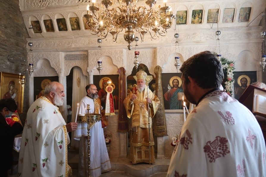 Με την παρουσία του Επάρχου Άνδρου κ. Δημ. Λάσκαρη και πιστών, τηρούντων τα μέτρα υγειονομικής προστασίας, ο Σεβασμιώτατος κ. Δωρόθεος Β΄ ιερούργησε σήμερα το πρωί στο Καθολικό της Ιεράς Μονής Αγίας Ειρήνης Αποικίων Άνδρου.