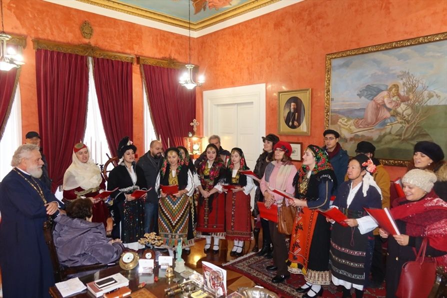 Στο Διοικητικό Κέντρο της Ιεράς Μητροπόλεως στην Ερμούπολη προσήλθαν και έψαλαν τα παραδοσιακά Πρωτοχρονιάτικα Κάλαντα στο Σεβασμιώτατο κ. Δωρόθεο Β΄ τα μέλη του ιστορικού Λυκείου Ελληνἰδων Σύρου, ντυμένα με παραδοσιακές φορεσιές.
