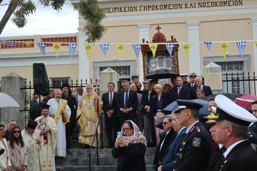 Λόγω της βροχοπτώσεως, οι Δεήσεις και η καθιερωμένη ομιλία του Σεβασμιωτάτου κ. Δωροθέου Β’ εκφωνήθηκαν μέσα στο Ναό.