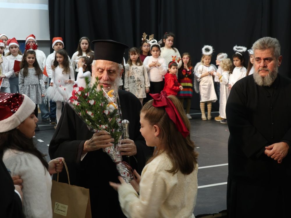 Ὁ Σεβασμιώτατος κ. Δωρόθεος Β’ ευχαρίστησε και συνεχάρη ιδιαίτερα τον Υπεύθυνο των Κατηχητικών, Πρωτοπρ. Νικόλαος Χαρούλη, τους Κατηχητές και τις Κατηχητριες και τους μαθητές και τις μαθήτριες των Κατηχητικών Σχολείων, και μάλιστα του προσχολικού Κατηχητικού Σχολείου, ευχήθηκε σε όλους υγεία, μακροημέρευση και ευλογημένα Χριστούγεννα και διένειμε στα παιδιά μικρά δώρα.