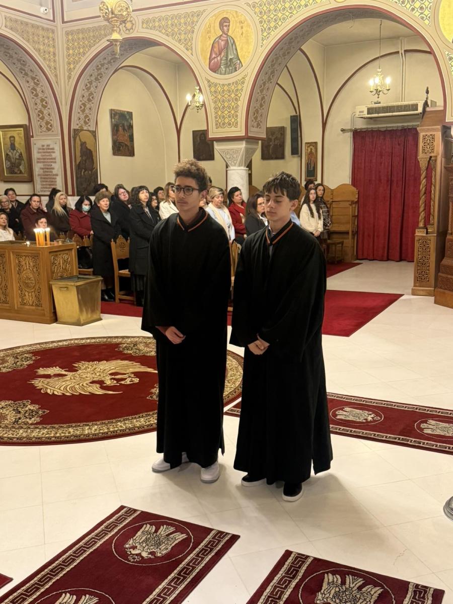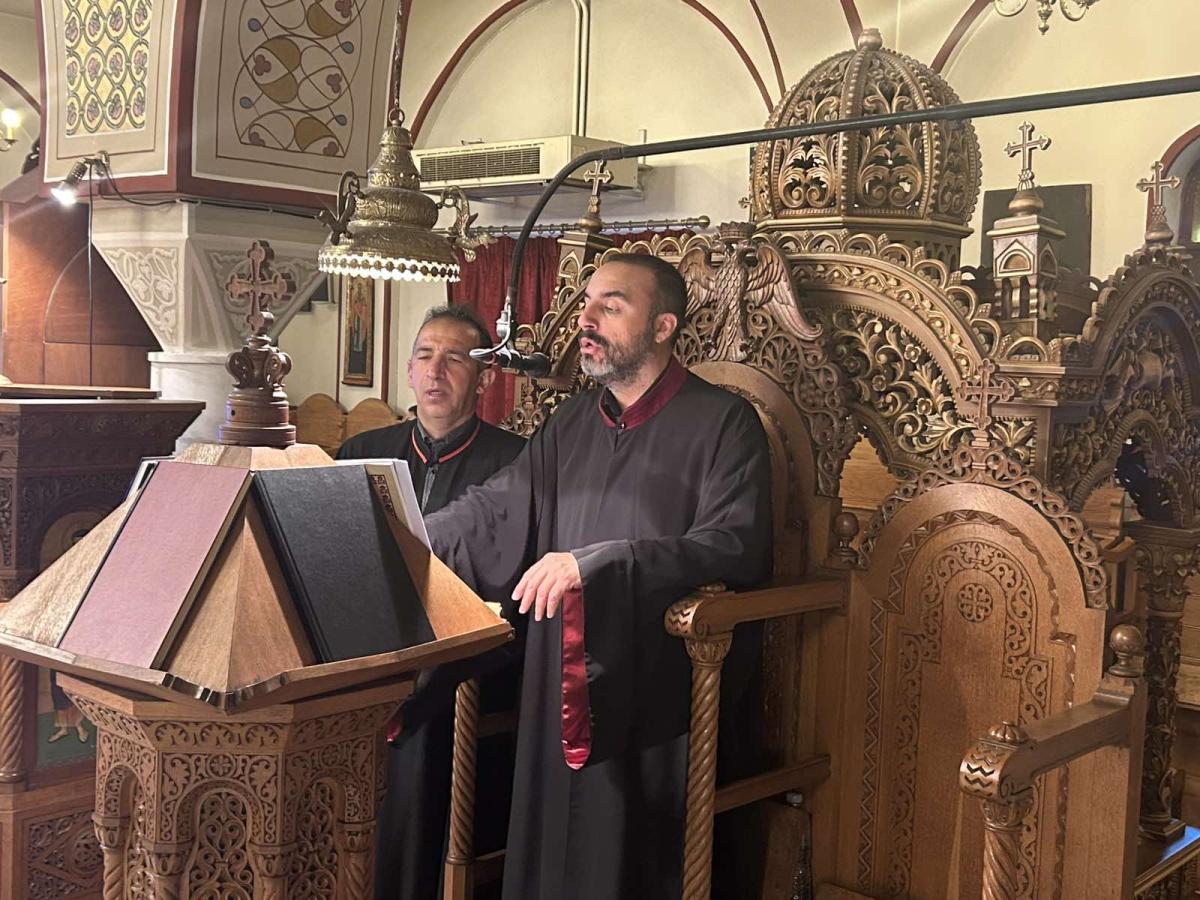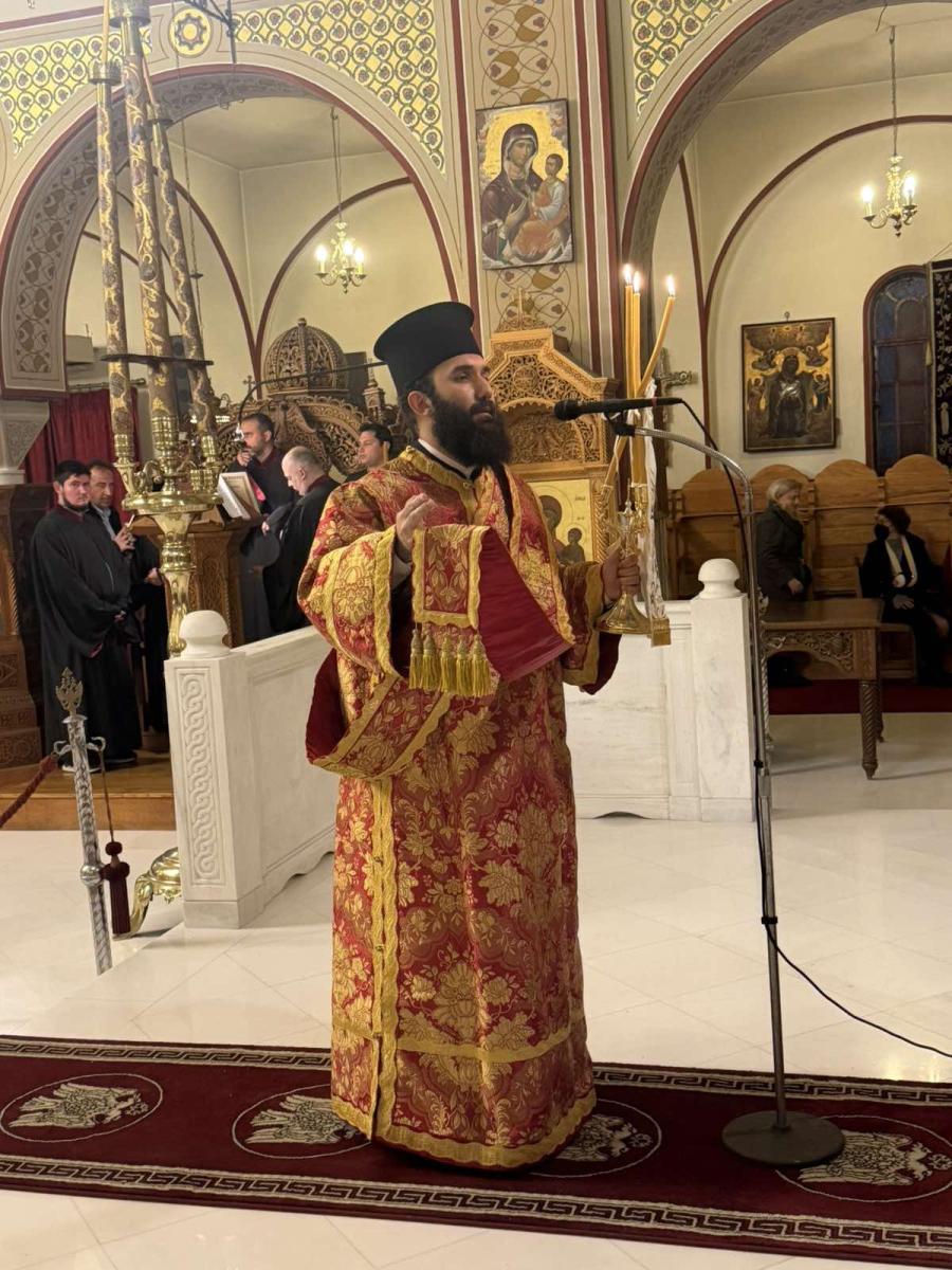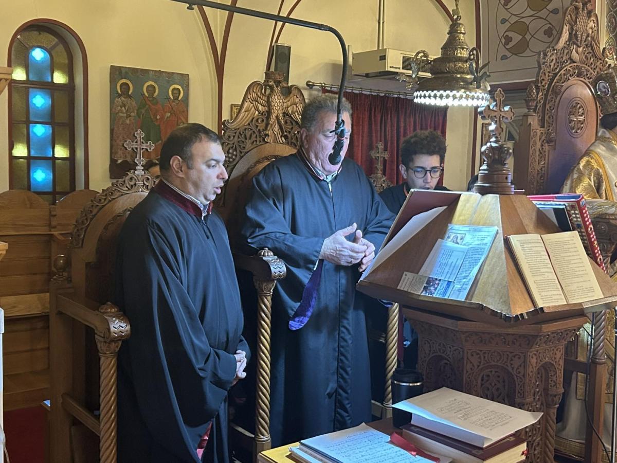 Τους ύμνους απέδωσαν χοροί Θηραίων ιεροψαλτών υπό τη διεύθυνση του Πρωτοψάλτου κ. Νικολάου Βαρβαρρήγου και του Λαμπαδαρίου κ. Βασιλείου Ρούσσου.