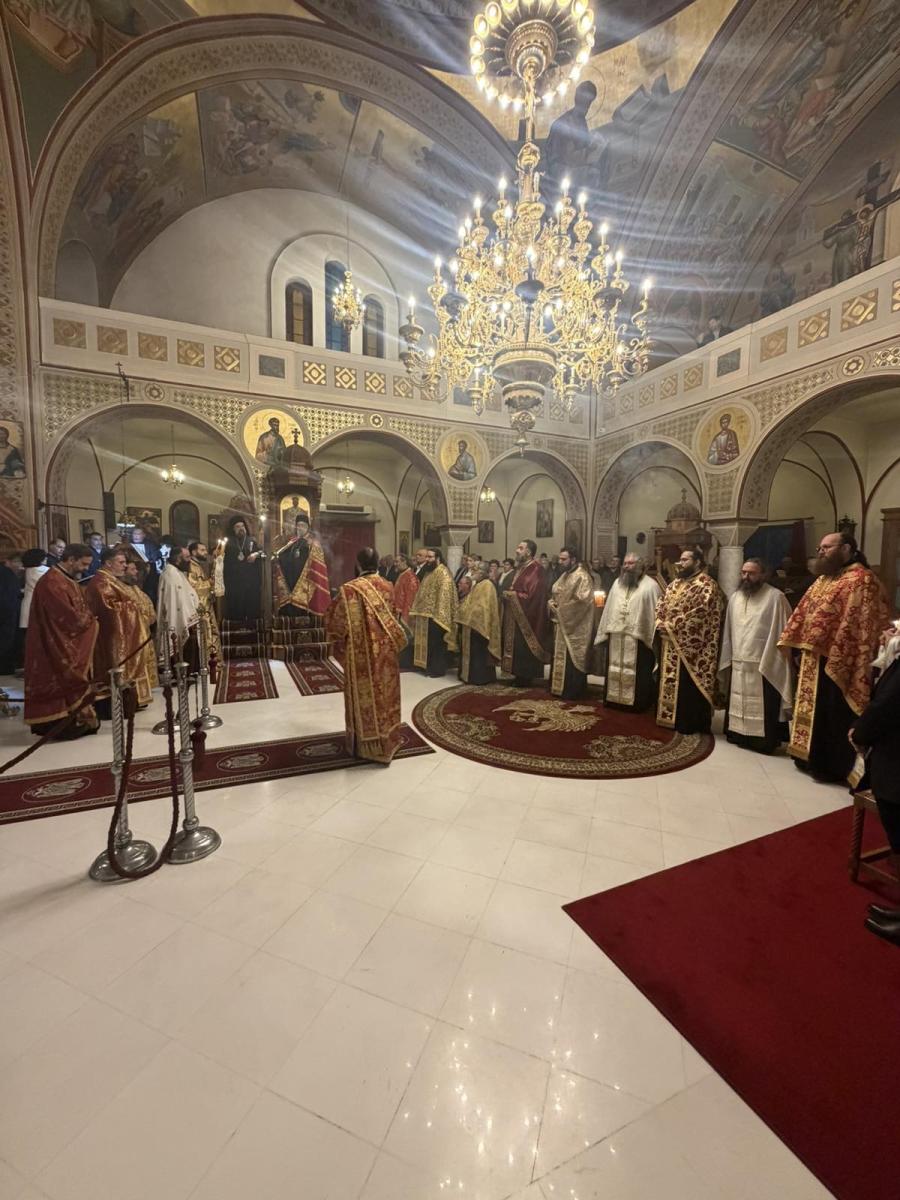 Την παραμονή της εορτής τελέσθηκε Μέγας Πανηγυρικός Δισαρχιερατικός Εσπερινός, χοροστατούντος του Σεβασμιωτάτου Μητροπολίτου Λεοντοπόλεως κ. Γαβριήλ και συγχοροστατούντος του οικείου Ποιμενάρχου, Σεβασμιωτάτου Μητροπολίτου Θήρας, Αμοργού και Νήσων κ. Αμφιλοχίου, συμπαραστατουμένων υπό των Εφημερίων και των ιεροδιακόνων της Ιεράς Μητροπόλεως.