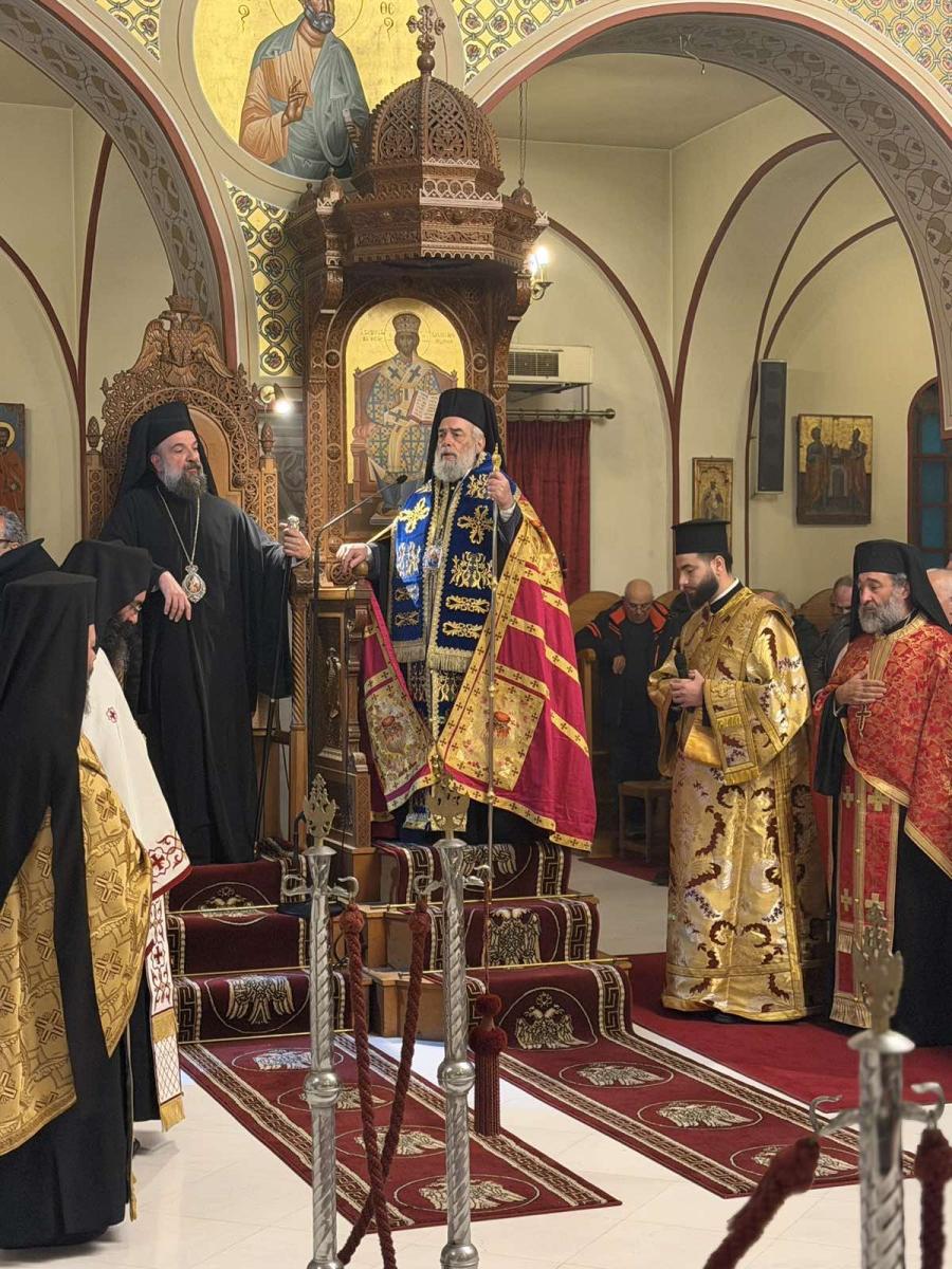 Κατά την κυριώνυμο ημέρα της εορτής, ο Σεβασμιώτατος Μητροπολίτης Λεοντοπόλεως κ. Γαβριήλ χοροστάτησε στον Όρθρο και προεξήρχε της Θείας Λειτουργίας, συνιερουργούντος του Σεβασμιωτάτου Μητροπολίτου Θήρας, Αμοργού και Νήσων κ. Αμφιλοχίου. Κατά το κήρυγμά του, ο Σεβασμιώτατος αναφέρθηκε στο βαθύ θεολογικό μήνυμα της Υπαπαντής, τονίζοντας τη συνάντηση Θεού και ανθρώπου ως γεγονός σωτηρίας και προσωπικής κλήσεως για κάθε πιστό.