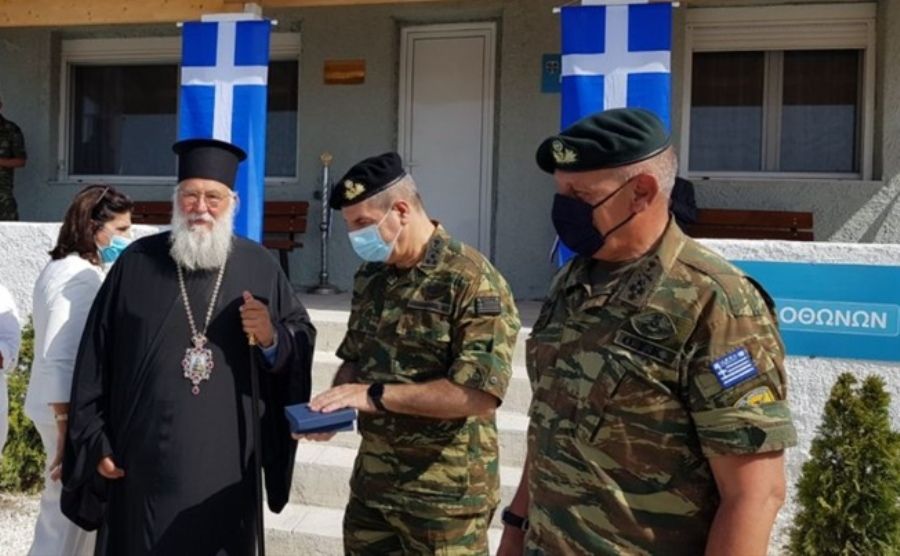 Ο Σεβασμιώτατος μετά την ολοκλήρωση του αγιασμού, προσφώνησε τον αρχηγό του Γενικού Επιτελείου κ. Φλώρο, ευχαριστώντας τον για την εγκατάσταση στο βορειοδυτικό άκρο της πατρίδας μας του στρατιωτικού φυλακίου. Μάλιστα δε εξήρε την ανάγκη της υπάρξεως του στρατιωτικού φυλακίου διότι, «κυκλώθεν ημών πολλοί οι εχθροί» όπως λέει η ευχή της εκκλησίας μας, που επιβουλεύονται την πατρίδα μας. Οι ακρίτες κάτοικοι των Οθωνών με την παρουσία του στρατού θα αισθάνονται πλέον, πιο ασφαλείς.