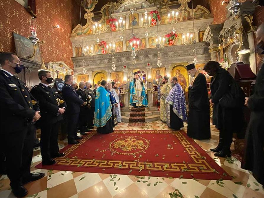 Μετά την ολοκλήρωση της Θείας λειτουργίας, τελέστηκε η καθιερωμένη Δοξολογία με την συμμετοχή των πολιτικών, στρατιωτικών και ναυτικών αρχών του νησιού μας. Στο τέλος της δοξολογίας ο Σεβασμιώτατος ευχήθηκε στον διοικητή του ΝΑΣΚΕ, αλλά και του Λιμενάρχου που εκπροσωπούσε το εμπορικό και πολεμικό ναυτικό, ο Άγιος Νικόλαος να είναι προστάτης στην ζωή τους. Μάλιστα αναφέρθηκε στους εξ ανατολών εχθρούς της πατρίδας μας, οι οποίοι επαπειλούν την πατρίδα μας. Ο Άγιος Νικόλαος να τους δίνει δύναμη, στις δύσκολες αυτές συνθήκες που αντιμετωπίζουν.
