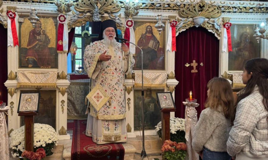 Ο Σεβ. στην ομιλία του κατά τη Θεία Λειτουργία, έλαβε αφορμή από το ευαγγελικό ανάγνωσμα, όπου δι' ολίγον ανέλυσε την ευαγγελική περικοπή και εν συνεχεία στάθηκε στην αφροσύνη του πλουσίου της παραβολής. Εξήγησε στους ανθρώπους την έννοια της αφροσύνης.