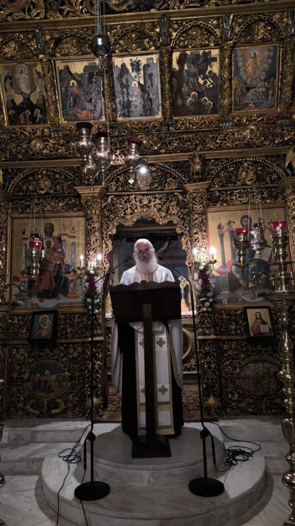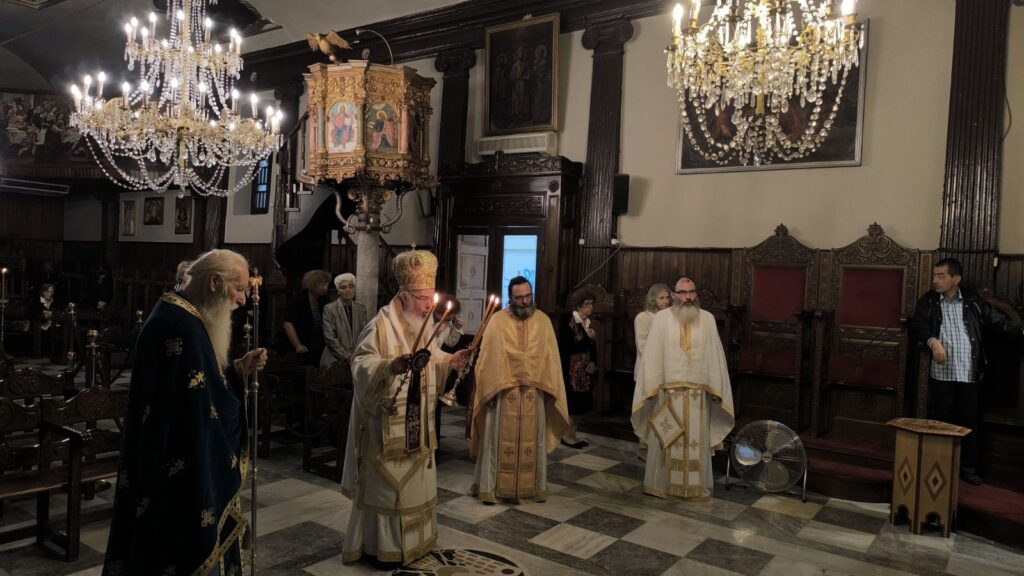 Τό Σάββατο 27 Σεπτεμβρίου 2025, παραμονή τῆς ἑορτῆς, καί ὥρα 19:00, τελέσθηκε ὁ ἀναστάσιμος Μέγας πανηγυρικός Ἑσπερινός στόν Ἱερό Μητροπολιτικό Ναό τοῦ Ἁγίου Χαραλάμπους, χοροστατήσαντος τοῦ Σεβασμιωτάτου Μητροπολίτου μας κ. Χρυσοστόμου καί μέ τή συμμετοχή πλήθους ἱερέων τῆς Μητροπόλεώς μας.