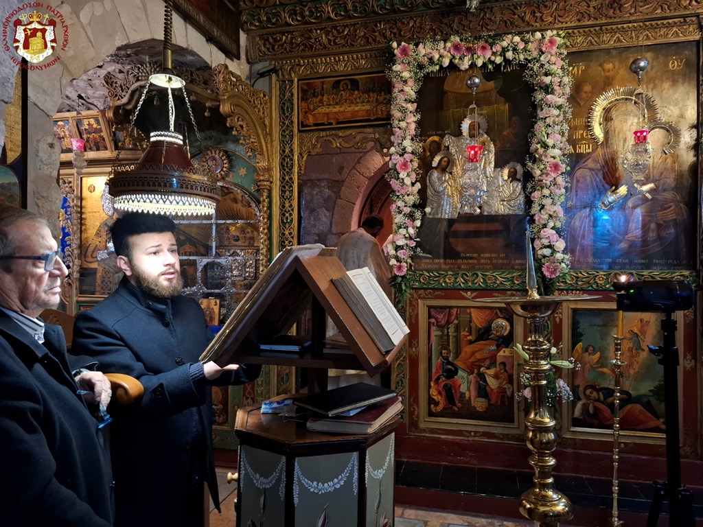 Πρός τιμήν τῆς ἑορτῆς αὐτῆς ἐτελέσθη εἰς τήν ὡς ἄνω Ἱεράν Μονήν Ἑσπερινός ἀφ’ ἑσπέρας καί θεία Λειτουργία τήν πρωΐαν, προεξάρχοντος τοῦ Σεβασμιωτάτου Ἀρχιεπισκόπου Κωνσταντίνης κ. Ἀριστάρχου συλλειτουργούντων ἐν τῷ Ἑσπερινῷ τῶν Ἀρχιμανδριτῶν π. Χριστοδούλου καί π. Ἀλεξίου, τοῦ π. Στεφάνου καί τῶν ἐφημερίων τοῦ Καθεδρικοῦ Ναοῦ τοῦ Ἁγίου Ἰακώβου τοῦ Ἀδελφοθέου π. Γεωργίου Μπαράμκη καί π. Χαραλάμπους Μπαντούρ καί τοῦ Ἱεροδιακόνου π. Δοσιθέου, καί ἐν τῇ θείᾳ Λειτουργίᾳ καί πάλιν τοῦ Ἀρχιμανδρίτου π. Χριστοδούλου καί τοῦ Ἀρχιμανδρίτου π. Ἰγνατίου, τῶν Ἱερέων τοῦ Ἁγίου Ἰακώβου καί ἄλλων Ἱερέων Ὀρθοδόξων χωρῶν καί τῶν Ἱεροδιακόνων π. Εὐλογίου καί π. Δοσιθέου, ψάλλοντος τοῦ Πρωτοψάλτου διακόνου π. Εὐσταθίου μετά τῶν μαθητῶν τῆς Πατριαρχικῆς Σχολῆς Σιών καί ἄλλων δεξιά ἑλληνιστί καί τῆς χορῳδίας τοῦ Ναοῦ τοῦ Ἁγίου Ἰακώβου ὑπό τόν κ. Ριμόν Κάμαρ ἀριστερά ἀραβιστί καί προσευχομένων μοναχῶν, μοναζουσῶν καί πιστῶν προσκυνητῶν, παρουσίᾳ ἀντιπροσωπείας τοῦ Ἑλληνικοῦ Γενικοῦ Προξενείου εἰς Ἱεροσόλυμα καί τοῦ Πρέσβεως τῆς Σουηδίας εἰς τό Ἰσραήλ, τῇ συμμετοχῇ ἀθρόου ἐκκλησιάσματος ἐκ μοναχῶν, μοναζουσῶν καί πολλῶν προσκυνητῶν ἐξ Ἑλλάδος καί ἄλλων Ὀρθοδόξων χωρῶν.