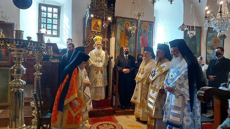 Πρός τό εὐλαβές ἐκκλησίασμα τοῦτο ἐκήρυξε τόν θεῖον λόγον ὁ Μακαριώτατος ἑλληνιστί ὡς ἕπεται:
