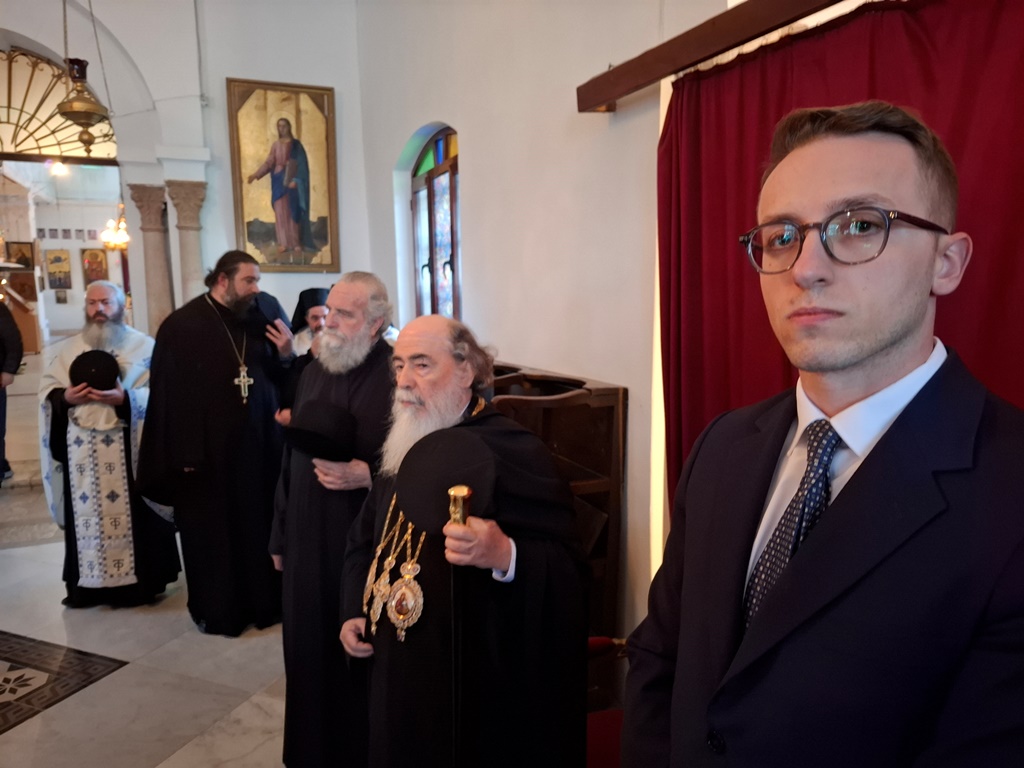 Ἀφ᾽ ἑσπέρας ἐτελέσθη Ἑσπερινός, τό Μικρόν Ἀπόδειπνον εἰς τό Ἱερόν Προσκύνημα τῆς Ἀναλήψεως καί ἡ Ἱερά λιτανεία πρός τήν Ἱεράν Μονήν Γαλιλαίων Ἀνδρῶν, προεξάρχοντος τοῦ Σεβασμιωτάτου Ἀρχιεπισκόπου Πέλλης κ. Φιλουμένου, τόν ὁποῖον ὑπεδέχθη ἡ Α.Θ.Μ. ὁ Πατήρ ἡμῶν καί Πατριάρχης Ἱεροσολύμων κ.κ. Θεόφιλος μετά τοῦ Πατριαρχικοῦ Ἐπιτρόπου Σεβασμιωτάτου Μητροπολίτου Καπιτωλιάδος κ. Ἡσυχίου καί τοῦ Γενικοῦ Προξένου τῆς Ἑλλάδος εἰς τά Ἱεροσόλυμα κ. Δημητρίου Ἀγγελοσοπούλου.