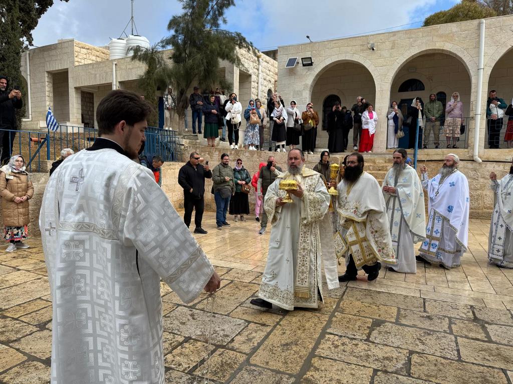 Εἰς τήν γυναικείαν Ἱεράν Μονήν τῶν ἀδελφῶν τοῦ Λαζάρου Μάρθας καί Μαρίας εἰς Βηθανίαν δι’ Ἑσπερινοῦ ἀφ’ ἑσπέρας καί θείας Λειτουργίας ἀνήμερα, τῆς ὁποίας προεξῆρξεν ἡ Α.Θ.Μ. ὁ Πατήρ ἡμῶν καί Πατριάρχης Ἱεροσολύμων κ.κ. Θεόφιλος, συλλειτουργούντων Αὐτῷ τῶν Σεβασμιωτάτων Ἀρχιερέων Μητροπολίτου Καπιτωλιάδος κ. Ἡσυχίου, Ἀρχιεπισκόπου Κωνσταντίνης κ. Ἀριστάρχο καί Ἀρχιεπισκόπου Μαδάβων κ. Ἀριστοβούλου, τῶν Ἁγιοταφιτῶν Ἱερομονάχων π. Ἐπιφανίου, π. Χριστοδούλου, τοῦ ἐκπροσώπου τοῦ Πατριαρχείου Μόσχας Ἀρχιμανδρίτου π. Βασιανοῦ, Ἱερέων ἐξ ἀδελφῶν Ὀρθοδόξων Ἐκκλησιῶν, τοῦ Ἀρχιδιακόνου π. Μάρκου καί τοῦ Ἱεροδιακόνου π. Εὐλογίου, ψάλλοντος τοῦ Ἱεροδιακόνου π. Συμεών καί τοῦ μοναχοῦ Ἰωσήφ, παρουσίᾳ τοῦ Γενικοῦ Προξένου τῆς Ἑλλάδος εἰς τά Ἱεροσόλυμα κ. Δημητρίου Ἀγγελοσοπούλου καί μετέχοντος πυκνοῦ ἐκκλησιάσματος προσκυνητῶν ἐκ πολλῶν Ὀρθοδόξων χωρῶν.