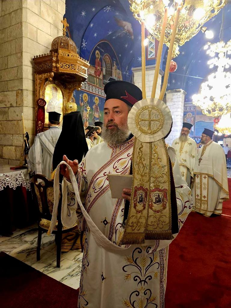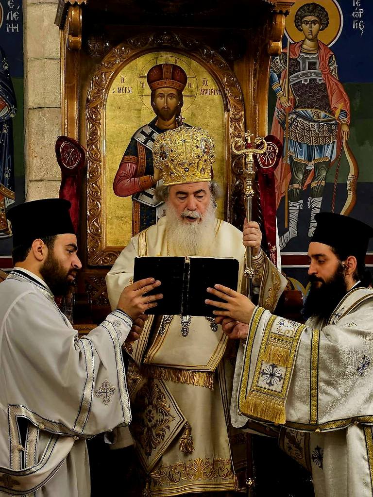 Εἰς τήν Ἱεράν Μονήν ταύτην ἐτελέσθη Ἑσπερινός ἀφ’ ἑσπέρας ὑπό τοῦ Σεβασμιωτάτου Ἀρχιεπισκόπου Πέλλης κ. Φιλουμένου καί θεία Λειτουργία τήν πρωΐαν, τῆς ὁποίας προεξῆρξεν ἡ Α.Θ.Μ. ὁ Πατήρ ἡμῶν καί Πατριάρχης Ἱεροσολύμων κ.κ. Θεόφιλος, συλλειτουργούντων Αὐτῷ τοῦ Σεβασμιωτάτου Μητροπολίτου Καπιτωλιάδος κ. Ἡσυχίου καί τοῦ Σεβασμιωτάτου Ἀρχιεπισκόπου Κωνσταντίνης κ. Ἀριστάρχου, τοῦ Γέροντος Καμαράση Ἀρχιμανδρίτου π. Νεκταρίου καί τῶν Ἀραβοφώνων Ἱερέων π. Ἠλία, π. Χαραλάμπους -Φάραχ, π. Γιοῦσεφ καί π. Γεωργίου, ψαλλόντων δεξιά τοῦ Ἱερομονάχου Συμεών καί τοῦ ἰατροῦ Γιακούμπ καί ἀριστερά τῆς ἀραβοφώνου χορῳδίας τοῦ Ἁγίου Ἰακώβου ὑπό τόν κ. Ριμόν Κάμαρ, τῇ συμμετοχῇ εὐσεβοῦς λαοῦ, πρός τόν ὁποῖον ἐκήρυξεν ἡ Α.Θ.Μ. διά τοῦ κάτωθι κηρύγματος Αὐτοῦ: