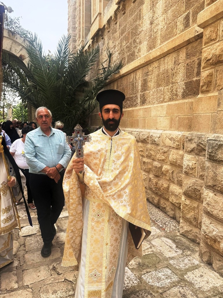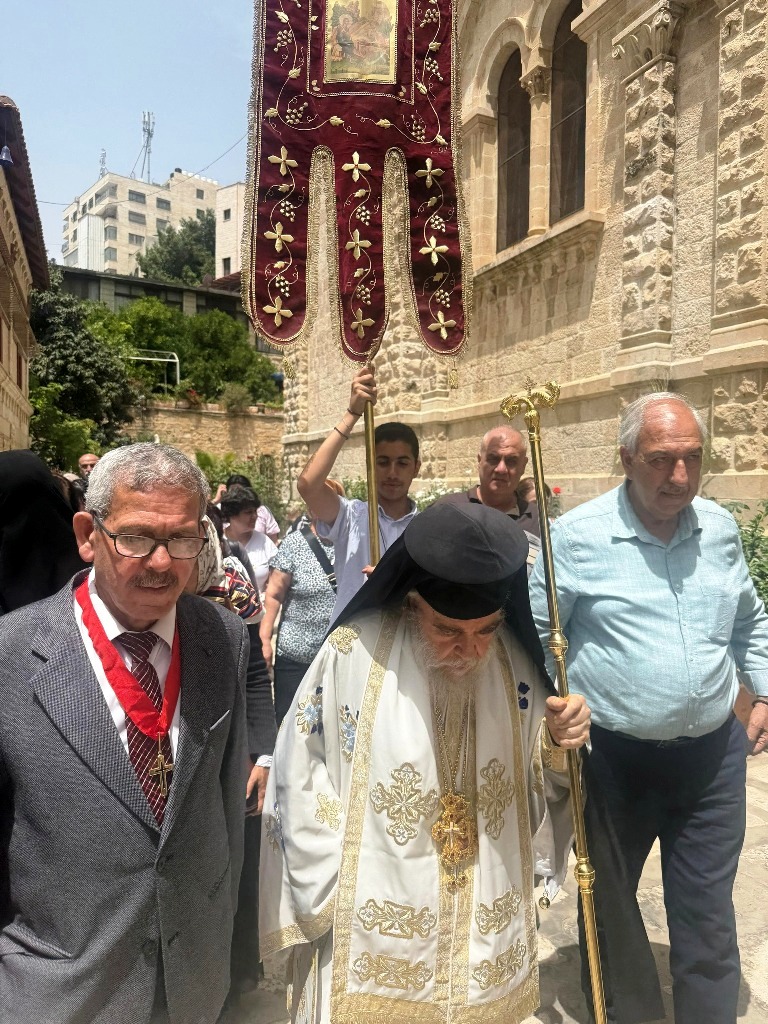 Μετά τήν θείαν Λειτουργίαν ἠκολούθησε Ἱερά Λιτανεία πέριξ τοῦ Ἱεροῦ Ναοῦ, κέρασμα καί ἑόρτιος τράπεζα.